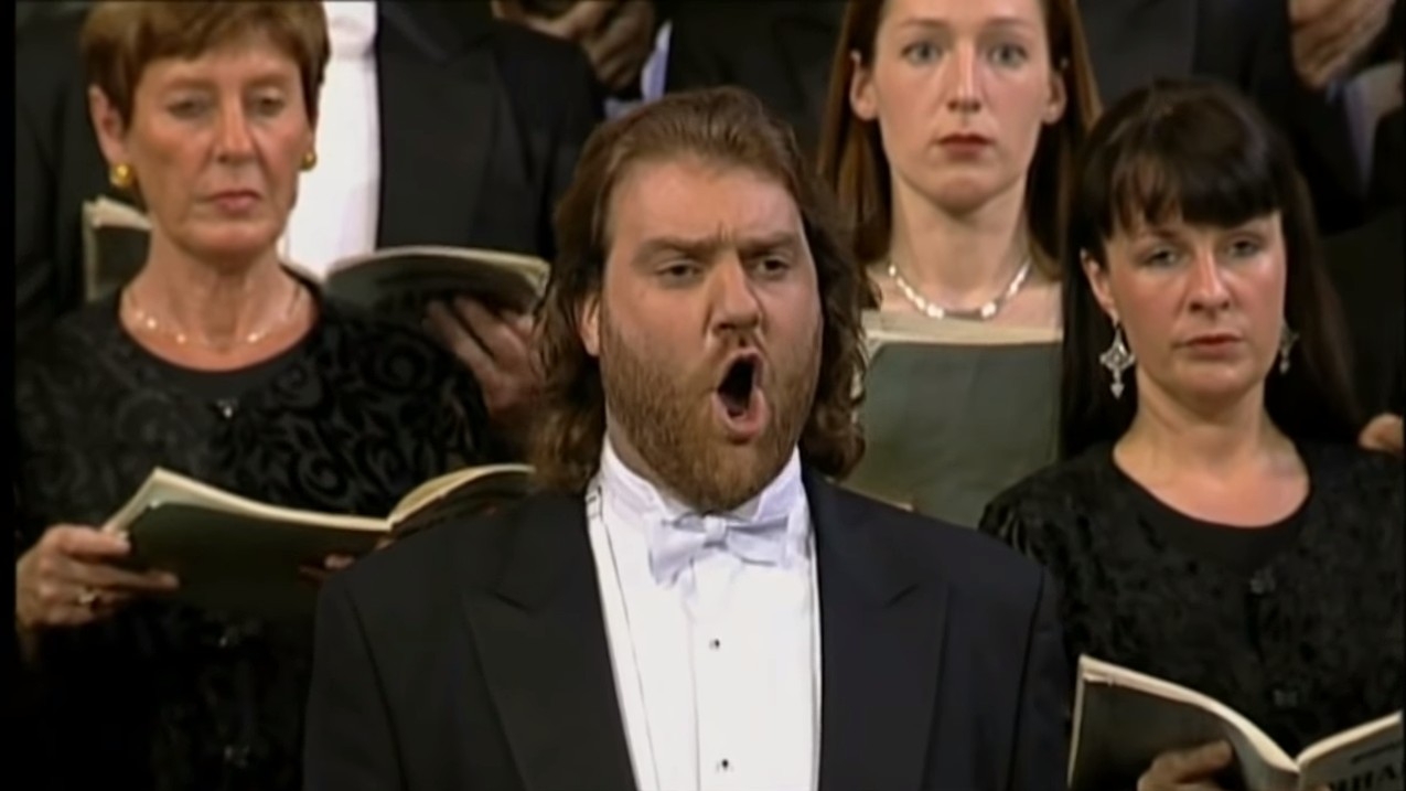 „Blahoslavení plačící, neboť budou potěšeni,“ zpívá sbor první verš. Po jemně se linoucí předehře klade v dlouhých hodnotách do absolutního ticha prvé tři slabiky německého textu „Selig sind“. V nich jako by bylo obsaženo vše: něžný nástup, sotva patrné rozvinutí a lehký odtah poslední noty, to vše v pianissimu, a přitom s úžasným napětím. Se stejnou nenucenou jemností slyšíme o pár taktů dál soprány vyhoupnout se bez akcentu na f2 a pak na a2, jako by to nic nebylo – jen na chvíli zasvítí a pak zase utichnou. Nový tematický materiál se objeví po necelých 50 taktech v mužském dvojhlase: „Ti, kteří rozsévali se slzami“ – žádní ukřičení tenoři, ale něžnost sama. Po malém vzrušení na slovech „sklidí úrodu s jásáním“, které probíhá na malém fugatu, se soprán opět vyhoupne do výšin a Abbado ho v nich modeluje drobnými pohyby levé ruky. Se stejnou měkkostí si sbor počíná i v samém závěru věty. Předpis zní zkrátka crescendo do forte a zase zpět a mnozí interpreti by toho využili, aby své hlasové fondy rozbalili, co to jen jde – ne tak u Abbada, tam se forte snoubí s ušlechtilou nadýchaností každého tónu.
