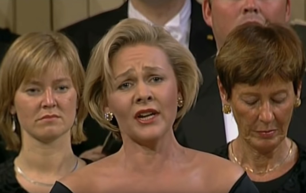 „I vy teď zakoušíte úzkost, ale až se znovu uvidíme, vaše srdce bude jásat radostí a tu radost vám nikdo nevezme.“ Pátá věta vznikla ve skutečnosti jako poslední a můžeme být vděčni, že se k jejímu zkomponování Brahms odhodlal. Je to místo překrásné zpovědi sólového sopránu. Také Barbara Bonney zpívá zpaměti a pohled na ni musí každého přesvědčit o absolutním porozumění zpívanému slovu. Její hlas jako by patřil nebeským výšinám. Pečlivá intonace, absolutní legato, vykreslení každé slabiky a drobná agogika přetvářejí už tak dokonalou melodii v něco naprosto božského. Sbor jí odvětí: „Jako když někoho utěšuje matka, tak vás budu těšit“ a na nenápadné pianissimovém deklamaci v osminových hodnotách ještě dokáže vykouzlit přiměřené vynesení akcentu tam, kde to jazyk vyžaduje. Stejně dokonale věta i pokračujte, v některých momentech Abbado sotva pohybuje rukama, pouze svým pohledem a lehce se vlnící levou rukou udržuje plynulý chod hudby.