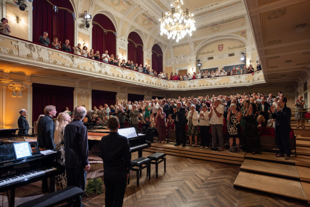 Šlo bezesporu o šťastný nápad oslavit Rok české hudby a dvousté výročí narození Bedřicha Smetany v jeho rodišti i tímto způsobem. Litomyšl letos rozezněly tóny všech skladatelových oper, na pořad se dostala jeho nejvýznamnější symfonická díla a dramaturgie festivalu ve spolupráci s interprety sáhla i do autorovy komorní tvorby. Pondělní koncert zaměřený na Smetanovy skladby pro dva a čtyři klavíry na čtyři, osm nebo šestnáct rukou byl výjimečný hned v několika ohledech a byť jeho celková délka přesáhla pouhou hodinku, lze jej označit za velkolepý. Se čtyřmi klavíry na pódiu se nesetkáváme často, oceňme firmu Petrof za vstřícnost a vzornou přípravu nástrojů. A když se pak člověk zaposlouchá, jak si s nimi pohrávají hned čtyři mistři oboru, následovaní anebo propojení se čtyřmi mladými interprety, již mají více než nakročeno k budoucí úspěšné kariéře, nezbude mu, než sledovat vše s tichým obdivem a úžasem.