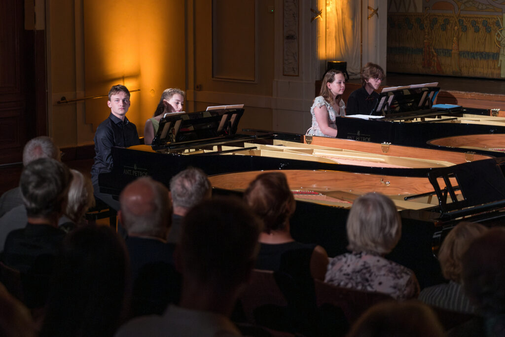 Večer gradoval. Předehra k opeře Prodaná nevěsta v úpravě pro čtyři klavíry na osm rukou (autorem aranžmá je německý klavírista a pedagog Marcus Kretzer) představuje vrcholně virtuózní úkol, k němuž byli vyzváni z okteta interpretů ti věkem starší. Nezaváhali a přivedli publikum k varu. To možná nejlepší ovšem čekalo publikum na samotný závěr. Scherzo z Triumfální symfonie E dur, op. 6 v úpravě pro čtyři klavíry na šestnáct rukou z roku 1856 opět přivedlo k nástrojům ostřílené hráče i jejich mladé kolegy, o nichž určitě ještě hodně uslyšíme. Podmanivost důvěrně známé skladby zůstala zachována, při pozorném poslechu mohly vyniknout prvky, jež lze v původní orchestrální verzi přehlédnout. A na tvářích všech přítomných osobností u klavírů se opět rozhostily stoprocentní koncentrace a radost ze vzájemné spolupráce.