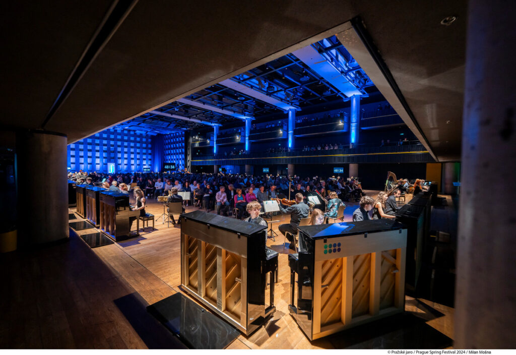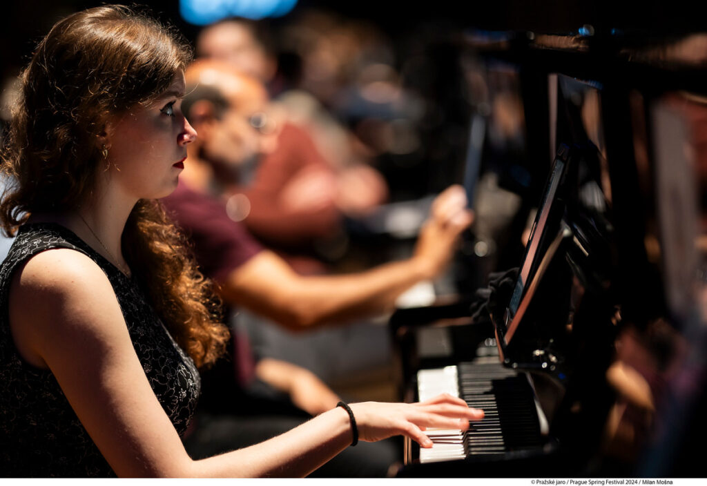 „Zkoušky v rámci soustředění klavíristů na Konzervatoři a Vyšší odborné škole Jaroslava Ježka řídila z odborného hlediska Zdeňka Košnarová, nácvik v Karlíně pak německo-britský dirigent Tim Anderson.“