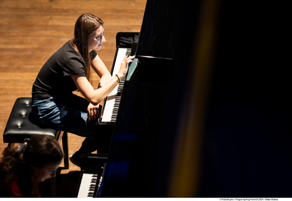 „Zkoušky v rámci soustředění klavíristů na Konzervatoři a Vyšší odborné škole Jaroslava Ježka řídila z odborného hlediska Zdeňka Košnarová, nácvik v Karlíně pak německo-britský dirigent Tim Anderson.“