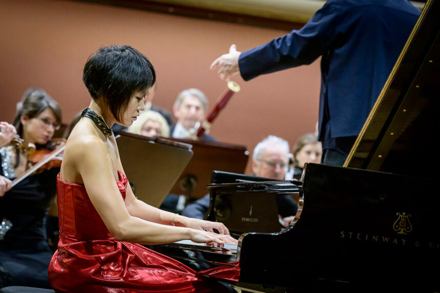 Třetí klavírní koncert Sergeje Rachmaninova je všude okolo nás – uživatelé na YouTube o něm sdílejí jedno fanouškovské video za druhým, má zásadní dějovou úlohu ve filmu Záře, každý ho volí do finálového kola mezinárodních klavírních soutěží, uchytila se pro něj populární přezdívka „Rach 3“. Přestože z hudebního hlediska mezi moje oblíbené nepatří, zároveň mě přitahuje svou aurou a jeho kultovnímu statusu se vůbec nedivím. Představuje totiž kulminaci kultury aktivně hrajících a cestujících klavíristů-skladatelů v první polovině dvacátého století, a možná i proto je tolik naživu, proto patří pódiu, ne nějakému „ideálnímu světu“ v představách. Jde o jednu z těch skladeb s „melodiemi za milion“, sólista v ní má spoustu prostoru ukázat své přednosti, instrumentace je na poměry svého žánru štědrá. Navzdory tomu všemu se na koncertech překvapivě zdaleka ne vždy poslouchá snadno – rozsahem je to poměrně upovídané dílo, klavír často nebývá dostatečně znělý, všudypřítomné chromatismy dokáží snadno zahltit ucho, pokud se s nimi nezachází citlivě. Kromě toho se v jeho specifičnosti, ambicích a virtuózní faktuře ukrývá nemilosrdná výzva pro interprety, aby se nějak vyrovnali s pianistickou i vkusovou úrovní samotného skladatele… Jak se s kvalitami i úskalími skladby na svém pražském vystoupení vypořádala Yuja Wang, klavíristka, která mimo jiné zkraje minulého roku v Carnegie Hall uvedla všech pět skladatelových koncertantních děl během jednoho večera?
