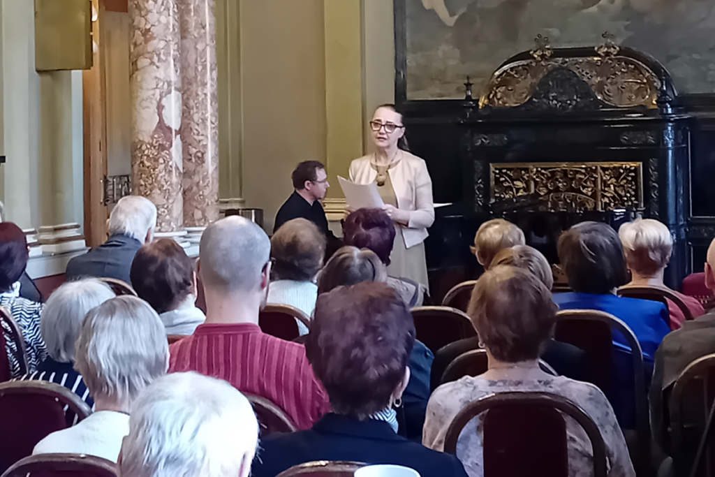 Pořad věnovaný českému melodramu si nelze představit bez tvorby Zdeňka Fibicha (1850–1900). V podání Apoleny Veldové zazněly v překladu Jaroslava Vrchlického verše Ferdinanda Freiligratha (1810–1876) Pomsta květin (v něm. originále Der Blumen Rache). Stejný text využil před Fibichem i Friedrich Adolf Ferdinand von Flotow (1812–1883). Jeho melodram vyšel v roce 1876, tedy v době, kdy se náš skladatelzačal tímto tématem zabývat, mohl tedy být jeho bezprostředním impulsem. Fibichovo pojetí spočívá v hlubokém pochopení básnického textu, což dává hereckému projevu interpreta jistou svobodu, a to včetně rytmického průběhu recitace. Toto vzájemné respektování obou složek je patrné i ve Fibichově scénickém díle – trilogii Námluvy Pelopovy, Smír Tantalův a Smrt Hippodamie, op. 33. Návštěvníci matiné nepřišli o ukázku ani z tohoto výjimečného díla – na samém konci se v působivém podání Apoleny Veldové dočkali monologu Hippodamie ze závěrečné části trilogie. Klavírního výtahu vytvořeného samotným skladatelem se opět se zkušeností korepetitora ujal Maxim Averkiev.