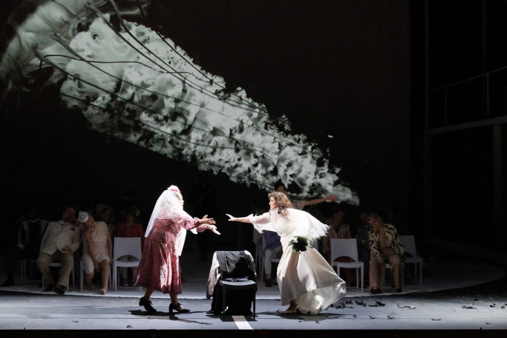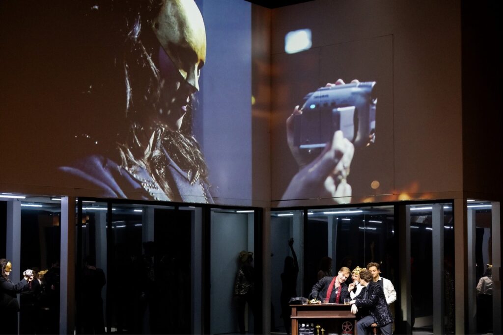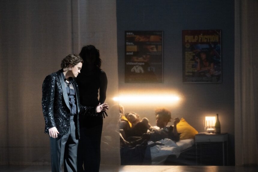 Nejpůsobivější na inscenaci v MusikTheater an der Wien je bezkonkurenčně hudba a její interpretace. Hudební nastudování a provedení inscenace na třetí repríze 1. března 2024, která je reflektovaná – premiéra byla 23. února 2024 –, bylo špičkové. Dirigent Kirill Karabits vedl zpěváky i ORF Radio-Symphonieorchester Wien pevně a cílevědomě, dal široký rozmach hudebním frázím, kantilény klenul do vypjatých vrcholů, části v pianu zněly sladce a nadýchaně a třpytivě se chvěly ve vzduchu. K tomu jistě hodně napomohlo posazení orchestru téměř na úrovni jeviště, takže zvuk se nedusí v orchestřišti. Napětí a vroucnost láskyplných emocí střídaly části kontrastní, líčící nenávist a boj dvou znepřátelených filmových klanů. Přesto stoupající dynamické vrcholy nepřehlušily nikdy vypjaté sólové pěvecké party. Svoji pověst potvrdil i Arnold Schoenberg Chor pod vedením Erwina Ortnera. Jeho úlohou je zahájit představení sborovým komentovaným vstupem, jehož hutnost a hymnické poselství diváka zastihne v rozechvělém strnutí. O to víc kontrastovala tato introdukce s vpádem do divoké maškarní párty klanu Kapuletů u příležitosti oslav zásnub dcery Julie s hrabětem Paridem. Různorodé divoké masky, opilost, kouření drog, nevázané sexuální chování „každého s každým“ (chůvu v létech nevyjímaje), včetně lesbického chování Julie se dvěma dalšími dívkami, promítané na plátně na horizontu jeviště, to vše charakterizovalo Julii jako feministku a příslušnici „zlaté mládeže“ a její vzplanutí k Romeovi nebylo zpočátku příliš přesvědčivé. Režijně nepřesvědčovala ani obrácená „balkonová scéna“, kdy Romeo je na balkoně a Julie v zahradě, a dokonce ani tajný sňatek. Všechno ubíhalo jako nezávazná hra na kočku a myš.