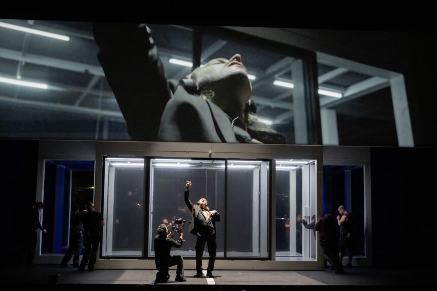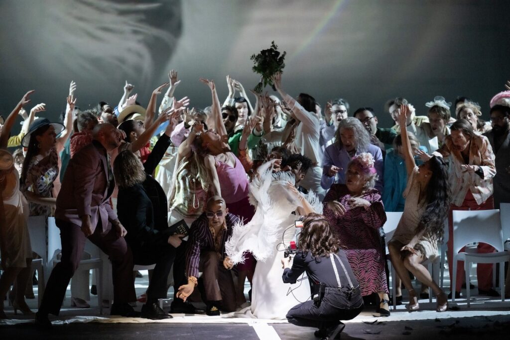 Operu Romeo a Julie napsal Charles Gounod na libreto Julese Barbiera a Michela Carré jako velkou francouzskou operu. Nadčasový příběh tragické lásky inscenuje Marie-Eve Signeyrole jako boj dvou klanů filmových producentů a zasazuje ho do roku 1994, kdy byl takový film natočen v Americe. Film se prolíná inscenací, navíc Julie sama natáčí selfie a na scéně jsou dva kameramani, jejichž záběry se v reálném čase promítají na scénu. Rozdíl mezi filmem a divadlem se stírá a divák neví, kam dřív s očima.