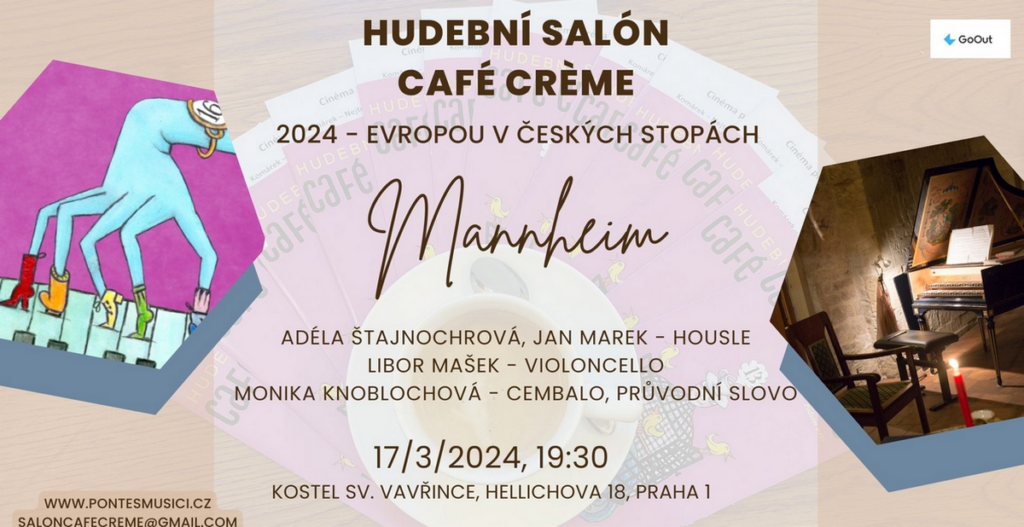 Hudební salón Café crème s podtitulem „lahůdky nejen hudební“ je cyklus čtyř koncertů – po každém skutečně následuje malé domácí občerstvení – cembalistky Moniky Knoblochové a jejích hostů. Řada večerů pod záštitou Pražského jara pokračuje 17. března a tématem je tentokrát německý Mannheim. Koncerty cyklu se konají v kostele sv. Vavřince na Malé Straně od půl osmé.