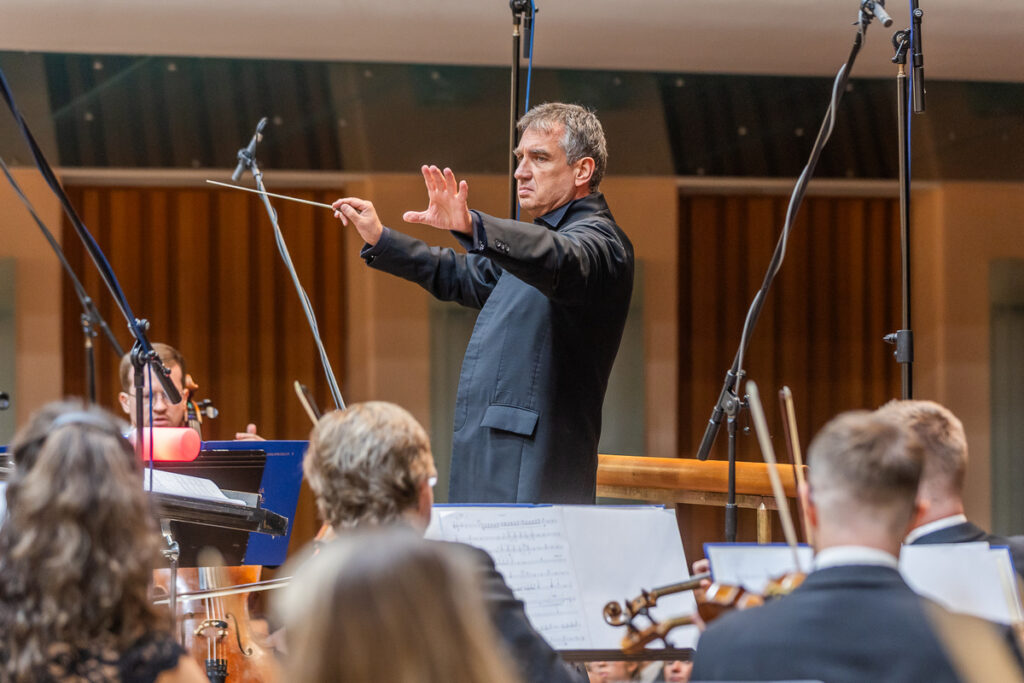 Na závěr zazněla skladba autora, který nikdy nezklame očekávání. Antonín Dvořák měl Olomouc rád, a dokonce spolupracoval s dosud stále působícím a letos jubilujícím Spolkem Žerotín, kterému věnoval i své oratorium Svatá Ludmila. Zazněla tu také jeho symfonická báseň Zlatý kolovrat, op. 109, v roce 1898, která se zde hrála samozřejmě i na zahajovacím koncertě před 80. léty. Letos, pod vedením šéfdirigenta Zsolta Hamara, si Dvořákovu hudbu všichni jak se patří užili. Široké barevné dvořákovské melodie s radostí a muzikantským nábojem hráli všichni, počínaje prvním houslistou Patrikem Sedlářem s jasným tónem, či violoncellistou Nikitou Ruzhavinskiim. Jásavě zněla flétna Petru Hladíkovi, sladce naříkal hoboj Radka Mattuše, měkce hladil i bral za srdce klarinet Aleše Janečky a srdce svíral anglický roh Gabriely Kummerové. Fagot Jana Dvořáka zněl hutně a pevně, stejně jako lesní roh Martina Paulíka či trombon Miroslava Tutka. Svítila trubka Stanislava Bartoše a vzletnost a noblesnost přinesla harfa Anastázie Tomečkové. Barevnou a dramatickou báseň podal orchestr tak, že evokovala děj v Erbenově baladě, o to víc probouzela emoce. Potlesk byl proto bouřlivý a bylo znát, že Moravská filharmonie Olomouc udělala svým posluchačům a fanouškům velkou radost. Přejme jim všem, aby pokračovala i na dalších koncertech.