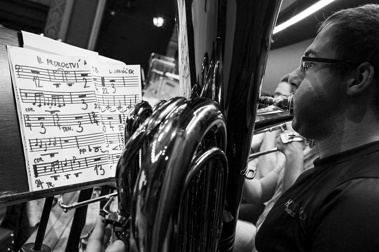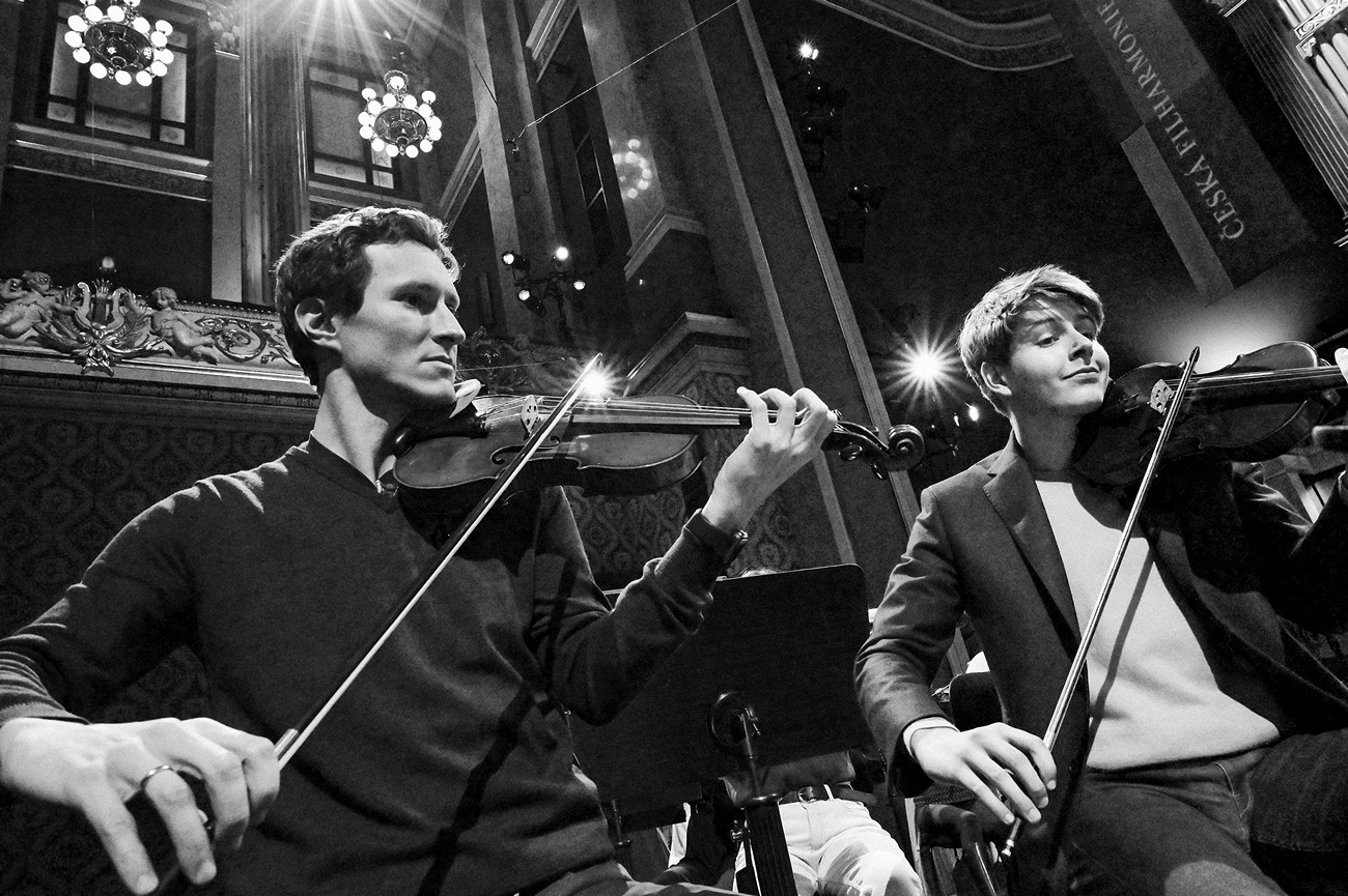 Hodina uteče jako voda, je čas na pauzičku. Po ní přijde na řadu Verdi, předehra k opeře Síla osudu. K Wagnerovi se zase vrátí zítra, při další zkoušce. „Začneme tady v tom místě. Uvidíme, kam se to posunulo,“ usmívá se Semjon Byčkov a propouští muzikanty na pár minut z pódia. Ale sám se ještě chvíli o něčem radí s Josefem Špačkem, který sedí u prvního pultu. Jinak tvoří studentskou filharmonii opravdu studenti. Z pražského Hudebního gymnázia, z Akademie múzických umění… Budoucí profesionálové. Ale i z dalších škol. Jsou tu i mladí, kteří se na vysoké připravují už na jinou profesi, ale nadále hrají.