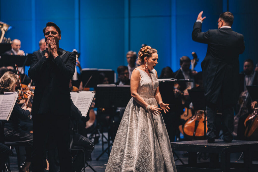 Blok českých oper zahájila Prodaná nevěsta Bedřicha Smetany árií Jeníka ze druhého dějství. Až uzříš… Jak možná věřit znělo přirozeně a volně a najednou se hlas uvolnil a rozjasnil. Věrné milování s Janou Šrejmou Kačírkovou v duetu z prvního dějství ještě prohloubilo pravdivost a vřelost projevu. Sopranistka přišla na druhé dějství ve svěží zelené róbě s širokou sukní, která podtrhla její mladistvý zjev. Skočná ze třetího dějství stejné opery se rozjela v téměř nehratelném tempu a i dirigent podlehl názvu a atmosféře a čile si na stupínku zaskákal, zatím co se smyčce a prsty hudebníkům málem zavařily. Strhli tak publikum k nadšenému potlesku a provolávání. Árie Za štíhlou gazelou z opery Antonína Dvořáka Armida patří k repertoárové výbavě sopránových adeptek, zatímco opera sama se na jevištích téměř nevyskytuje, bůh ví proč. Pěvkyně ji podala s vnitřním napětím a upřímným projevem svého krásného hlasu. Poté zazněla árie Dalibora ze stejnojmenné opery Nebyl to on zas… Ó, Zdeňku a tenorista do ní dal celou šíři hlasu, který mu zde příjemně barevně vyzněl. Poté přišla Jana Šrejma Kačírková v temně modrých šatech s jemnými flitry, kterými vyrazila publiku dech. Působila úchvatně jako smrtící víla Rusalka z opery Antonína Dvořáka, když nejprve procítěně zazpívala árii Měsíčku na nebi. Orchestr vpadl s Polonézou, která kvůli upozadění orchestru neměla potřebnou šíři, přesto efektně zapůsobila. Po ní přišel z levého portálu nejprve tenorista, jako zhroucený Princ a posléze z pravého portálu vplula na jeviště sopranistka. Miláčku znáš mne, znáš… Mrtva-lis dávno znělo finále Dvořákovy Rusalky, které se podařilo protagonistům i přesvědčivě herecky rozehrát – sice náznakově, ale účinně. Přestože se tenoristovi v roli Prince dařilo (před nedávnem tuto roli ztvárnil i na jevišti Státní opery ve Vídni), veškerou pozornost na sebe strhla sopranistka, která v tu chvíli skutečně Rusalkou byla. Vždyť jí ještě stále na jevišti Janáčkovy opery je. (Čtěte ZDE.)