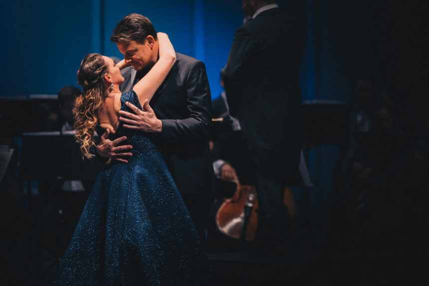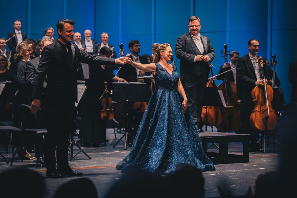 Blok českých oper zahájila Prodaná nevěsta Bedřicha Smetany árií Jeníka ze druhého dějství. Až uzříš… Jak možná věřit znělo přirozeně a volně a najednou se hlas uvolnil a rozjasnil. Věrné milování s Janou Šrejmou Kačírkovou v duetu z prvního dějství ještě prohloubilo pravdivost a vřelost projevu. Sopranistka přišla na druhé dějství ve svěží zelené róbě s širokou sukní, která podtrhla její mladistvý zjev. Skočná ze třetího dějství stejné opery se rozjela v téměř nehratelném tempu a i dirigent podlehl názvu a atmosféře a čile si na stupínku zaskákal, zatím co se smyčce a prsty hudebníkům málem zavařily. Strhli tak publikum k nadšenému potlesku a provolávání. Árie Za štíhlou gazelou z opery Antonína Dvořáka Armida patří k repertoárové výbavě sopránových adeptek, zatímco opera sama se na jevištích téměř nevyskytuje, bůh ví proč. Pěvkyně ji podala s vnitřním napětím a upřímným projevem svého krásného hlasu. Poté zazněla árie Dalibora ze stejnojmenné opery Nebyl to on zas… Ó, Zdeňku a tenorista do ní dal celou šíři hlasu, který mu zde příjemně barevně vyzněl. Poté přišla Jana Šrejma Kačírková v temně modrých šatech s jemnými flitry, kterými vyrazila publiku dech. Působila úchvatně jako smrtící víla Rusalka z opery Antonína Dvořáka, když nejprve procítěně zazpívala árii Měsíčku na nebi. Orchestr vpadl s Polonézou, která kvůli upozadění orchestru neměla potřebnou šíři, přesto efektně zapůsobila. Po ní přišel z levého portálu nejprve tenorista, jako zhroucený Princ a posléze z pravého portálu vplula na jeviště sopranistka. Miláčku znáš mne, znáš… Mrtva-lis dávno znělo finále Dvořákovy Rusalky, které se podařilo protagonistům i přesvědčivě herecky rozehrát – sice náznakově, ale účinně. Přestože se tenoristovi v roli Prince dařilo (před nedávnem tuto roli ztvárnil i na jevišti Státní opery ve Vídni), veškerou pozornost na sebe strhla sopranistka, která v tu chvíli skutečně Rusalkou byla. Vždyť jí ještě stále na jevišti Janáčkovy opery je. (Čtěte ZDE.)