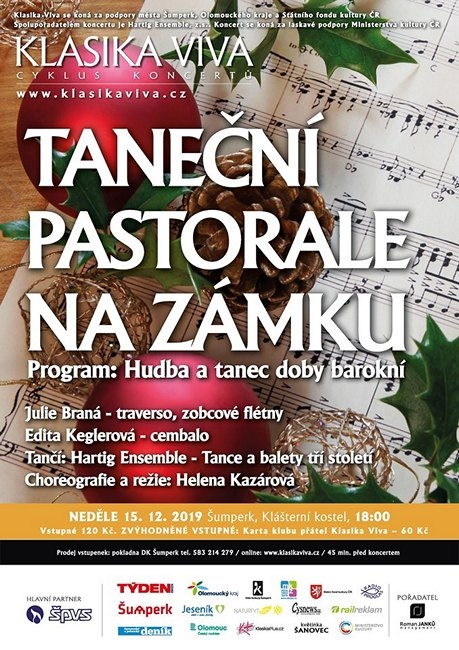 Hartig Ensemble provede v programu nazvaném Tance a balety tří století francouzské tance ze dvora Ludvíka XV., i taneční pastorále, které pastýřskými a přírodními motivy přirozeně souzní s adventním časem. Hudebními partnerkami tanečníků budou cembalistka Edita Keglerová a flétnistka Julie Braná. Obě interpretky se dlouhodobě staré hudbě intenzivně věnují, společně založily soubor Accento. Vystoupení se koná v Klášterním kostele v Šumperku od šesti hodin.