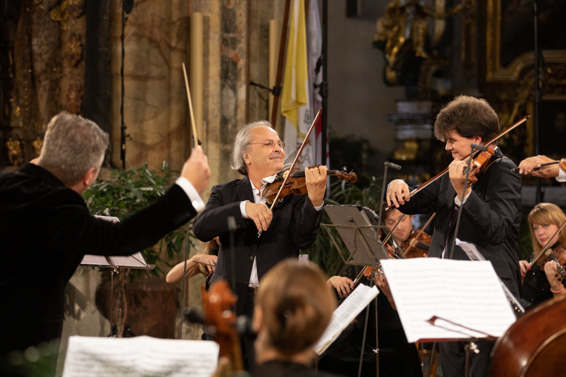Na 1. Adventní neděli se můžete těšit na záznam koncertu, na kterém letos v září vystoupili houslisté Václav Hudeček a Jan Mráček, Pražští komorní sólisté a Pěvecký sbor Notre Dame, dirigoval Radek Baborák. Koncert se konal v Týnském chrámu na Staroměstském náměstí v Praze a 29. listopadu ho od 20:45 hodin odvysílá v cyklu Má vlast TV NOE. Na programu jsou skladby Franze Xavera Biebla, Claudia Monteverdiho, Antonia Vivaldiho, Wolfganga Amadea Mozarta a Edvarda Hagerupa Griega.