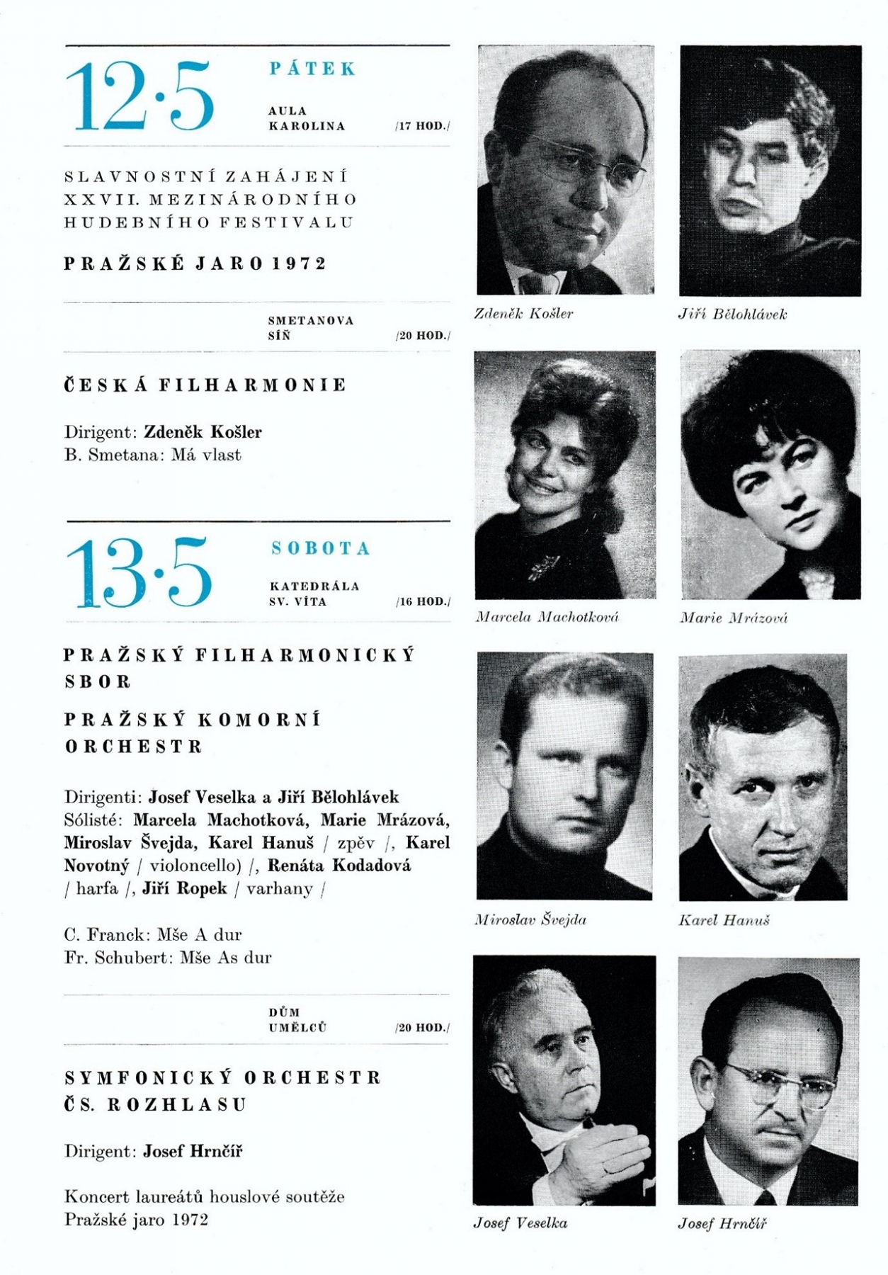 Dnešní díl doplňuje řada dalších unikátních dokumentů, mezi nimiž figuruje svou cenou sice nezajímavý, ale v kariéře Jiřího Bělohlávka mezníkový program Pražského jara 1972, v němž dirigoval poprvé, aby poté vystoupil na tomto festivalu ještě pětačtyřicetkrát!
