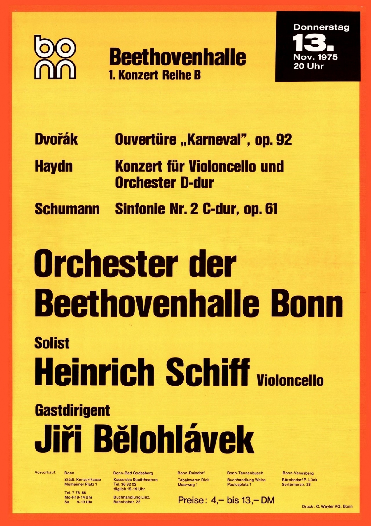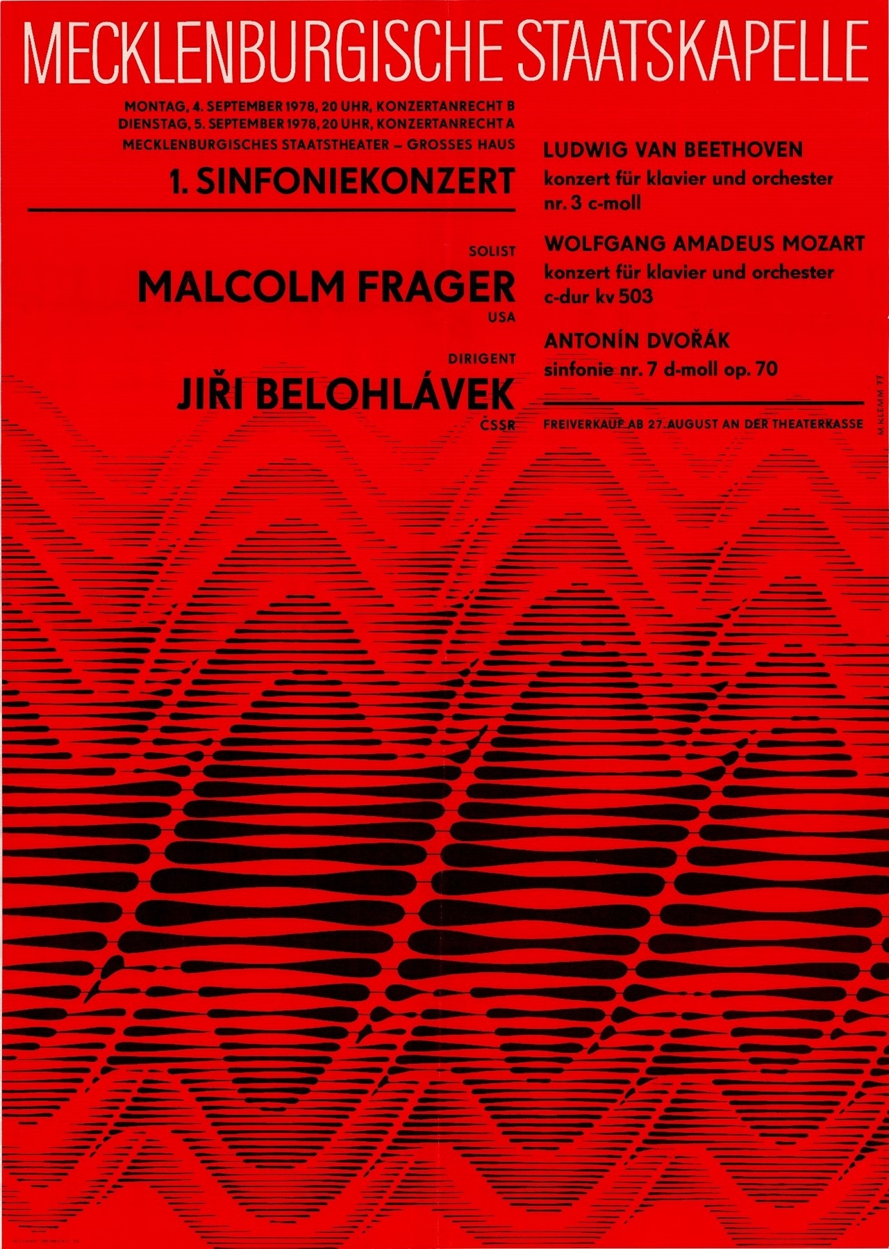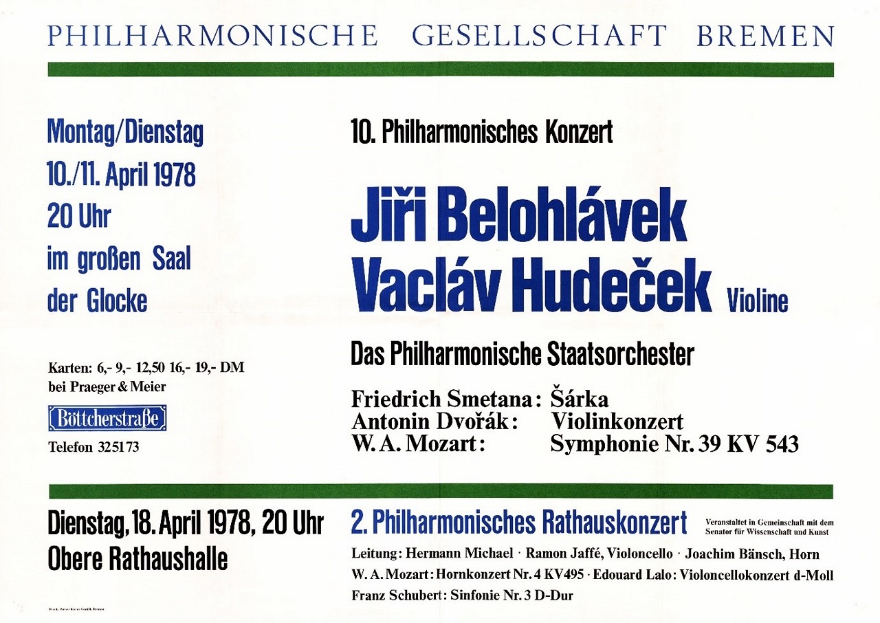 Devátý červen 1970 byl pro Jiřího milníkem: jeho první koncert s Českou filharmonií. Byl to nemalý skok od dirigování dívčího orchestru Puellarum Pragensis, který vedl doma i v zahraničí celkem šestačtyřicetkrát. Ručně kreslený plakát je jediný svého druhu mezi stovkami, které mám zpracované ve svém archivu.