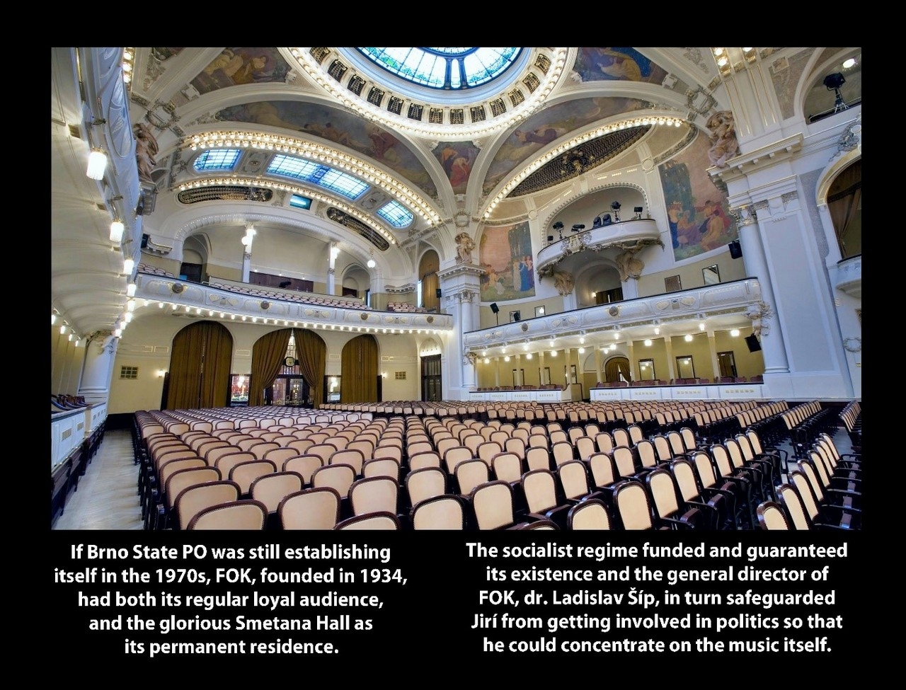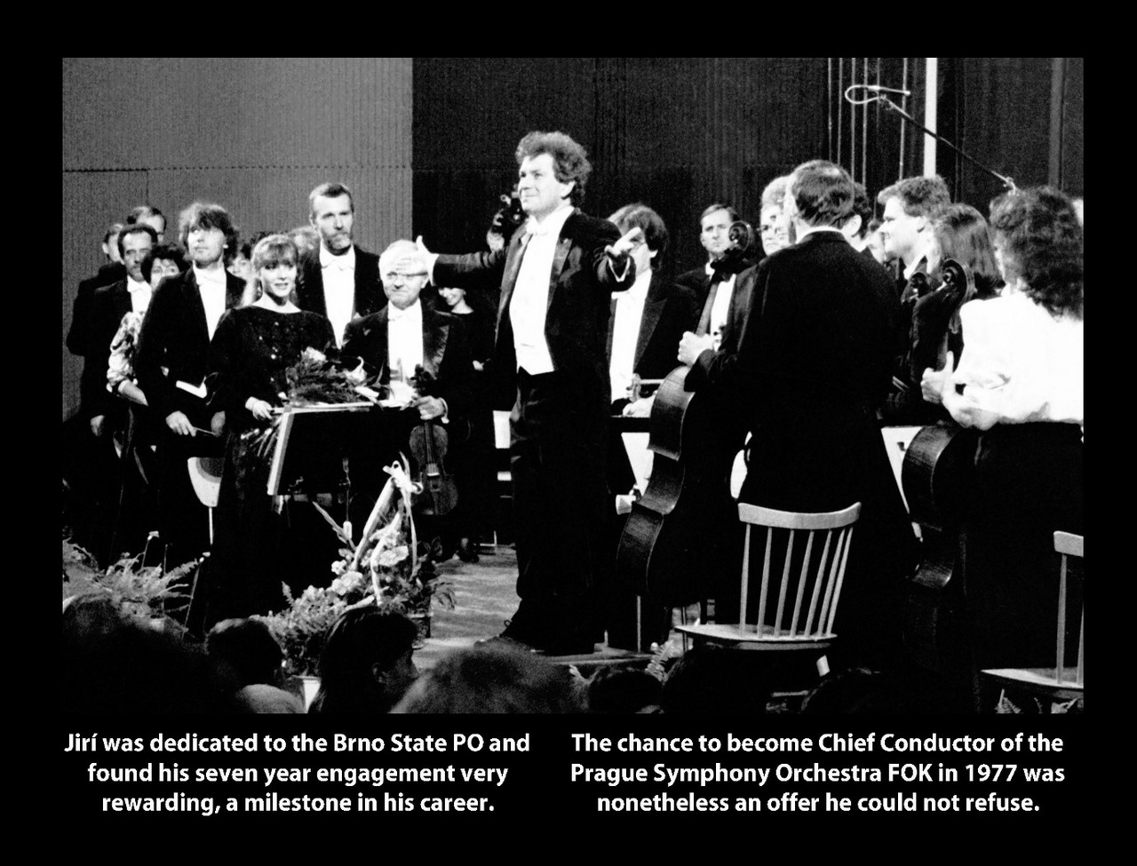 Fotokniha je naopak ve svém textu co nejstřídmější, a tak Jiřího přechod z Brna do Prahy sumarizuje ve dvou fotografiích s tím, jak sedmiteleté dirigentské angažmá ve Státní filharmonii Brno bylo pro Jiřího plodné a mezníkové, avšak nabídku stát se šéfdirigentem FOKu odmítnout dost dobře nemohl.
