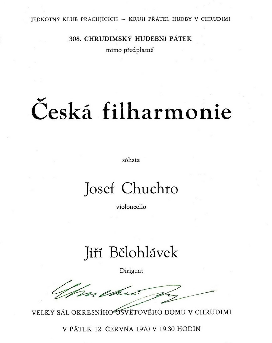 Celá ta léta jsem spolupracoval s Českou filharmonií, už od června 1970 na koncertě ve Smetanově síni, opakovaném o pár dní později v Chrudimi. Na programu byl Dvořák, 8. symfonie a Cellový koncert, sólo hrál Josef Chuchro, platil za předního cellistu, tehdy ještě ve své vrcholné formě, a byl to pro mne krásný zážitek. Dodnes si vzpomínám, jak jsem z toho byl velmi nadšen, opravdu excitován.