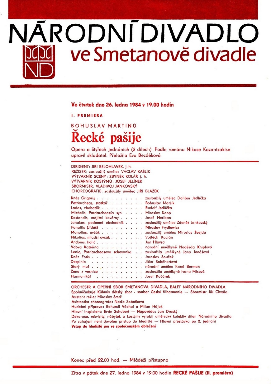 PS. Jako perličku si neodpustím komentář o svém celosvětovém sbírání materiálu o Jiřím. V jeho exemplárním archivu obětavě vedeným tatínkem, sestrou a Danem Voříškem bylo úžasné množství materiálu, které však přece jen potřebovalo četné ověřování a také doplňování. A tak naopak ve svém archivu mám stovky emailů a v paměti vzpomínek na nejrůznější instituce i jejich zaměstnance, na které jsem se obracel o pomoc. Například Peter Huth z berlínské Komische Oper mě nejen obětavě zásobil vším, čím mohl, včetně dnešních dokumentů, ale ještě mě urgoval, abych jak jeho, tak kterékoliv operní představení Komische Oper si budu přát, navštívil kdykoliv budu v Berlíně. Ne všichni v Německu reagovali stejně, a tak jsem za jeden dokument musel zaplatit mizerných 5 euro a největší problém byl, jak to fyzicky provést, neboť onen jiný operní dům nechtěl kreditní kartu, hotovost, Paypal, pouze bankovní převod, což má londýnská banka považovala za idiotský nápad. Já také. Naprostá většina československých institucí byla nápomocná, někdy až dojemně – Národní divadlo, Státní filharmonie Brno, FOK, Česká filharmonie, Česká televize, PKF, všemožné knihovny, Chrudim, Košice, Mariánské lázně a další a další mi pomáhaly, jak mohly a jsem jim za to dodnes nesmírně vděčný! Několika málo jsem musel zaplatit, což mi samo o sobě tolik nevadilo, ale hluboce se mě dotklo, že dvěma, s nimiž jsem navíc za svého života v Praze spolupracoval, nestačilo ani mé slovo, že už jsem zaplatil, ani emailové potvrzení z mé banky, a materiály mi postoupily teprve tehdy, když si samy ověřily, že mají peníze na svém kontě. Jestli někdy monografii napíšu, budu v ní obě jmenovat. Teď Český rozhlas a Muzeum hlavního města Prahy raději neprozradím.