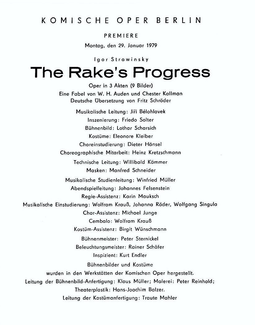 Bylo to organizováno tak, že on tam měl jedno své obsazení, se kterým provedl první premiéru, a já jsem paralelně studoval a zkoušel s druhým obsazením, dělal s ním druhou premiéru a pak mnoho repríz řídil sám. Na základě této spolupráce jsem o dva roky později dostal pozvání na Stravinského Život prostopášníka, který jsem tam také nastudoval a řídil.