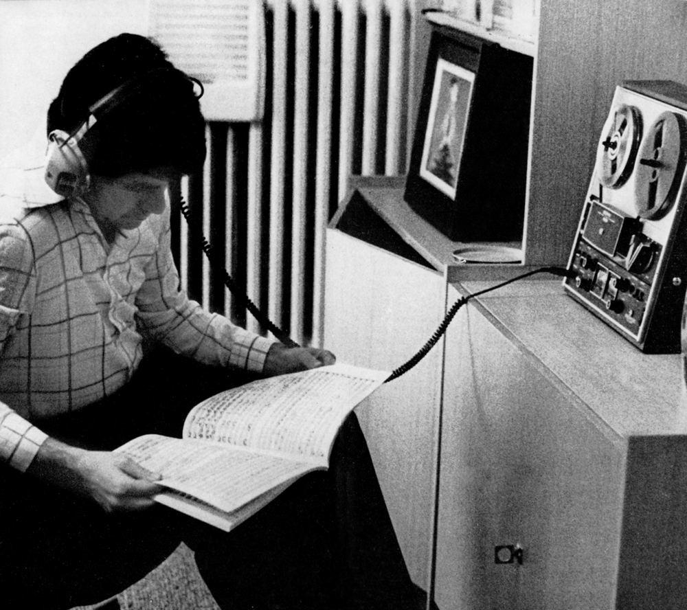 Projevoval jsem opravdový zájem, jak se vše zachycuje a vyrábí, tehdy se ještě natáčelo na magnetový pás na takových velkých špulkách a veškeré střihy, veškeré úpravy se dělaly fyzicky skutečně nůžkami, přímo na stroji. Technik musel to místo přesně najít, přímo na snímací hlavě, mnohokrát to zkoušel, pak si to označil a střihnul. Správně střihnout bylo velké umění, protože jakmile se jednou střihlo, tak už to nešlo dát zpátky. Dneska máme tu výhodu, že digitálně jdou zkusit nejrůznější kombinace a vždycky se to může vrátit do originálu. To tehdy vůbec nešlo. I když se ten střih vzápětí slepil a pás zůstal jinak nezměněný, tak už to bylo slyšet, ten mechanický střih měl skutečně patrný vliv na tu zvukovou stopu. Byla to velká alchymie, a já jsem hrozně rád pozoroval všechny ty postprodukce, jak se to rodilo, stříhalo, jak to rozhodnutí udělat určitou montáž bylo opravdu zásadní, a jak bylo třeba velmi často používat dvakrát měř a jednou řež, nebo spíš třikrát měř a třikrát uvažuj, než do toho střihneš.