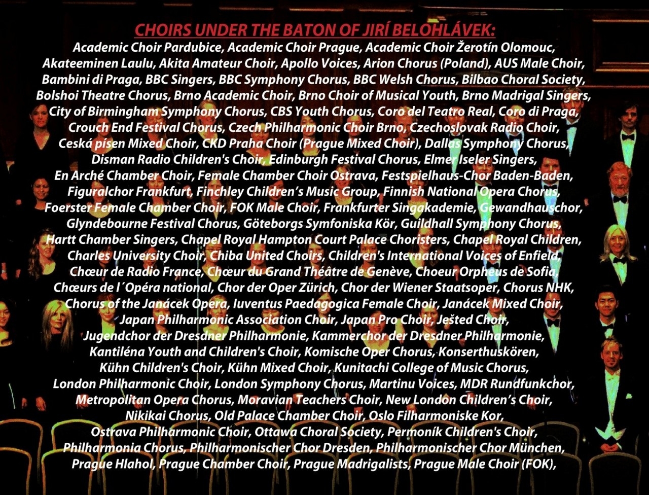 Dalším zásadním rozhodnutím bylo pracovat v angličtině s tím, že všechna jména ve všech jazycích zůstanou s nativní diakritikou. Nebylo nesnadné rozhodnout se, co vše chci sledovat a statisticky zpracovat: časové údaje, místa včetně měst, států, světadílů, orchestry, sbory, sbormistry, interprety rozdělené do všemožných skupin, provedené a nahrané skladby či jejich části, veškeré nosiče, údaje vydání, obaly, plakáty, fotografie, programy, recenze, Jiřím anotované partitury a další) a v dnešním přehledu tak mohu logicky prezentovat jeden z nejzákladnějších parametrů, a to výčet orchestrů a sborů, které Jiří Bělohlávek dirigoval, ať už na koncertech či nahrávkách, plus sbormistrů, kteří vedli relevantní sbory. V praxi jsem si musel mezi desítky a desítky existujících položek přidat navíc orchestrální zkratky (FOK) a alternativní názvy orchestrů, tak jak procházely změnami. Kvůli plánované dvojjazyčné verzi jsem vedl orchestry i v jejich v angloamerickém světě zažitém anglickém názvu, a to přesně takovém, když je dirigoval JB, a v závorkách případně uváděl jejich jména, pod nimiž také bývaly či jsou známy v době, kdy je nedirigoval.