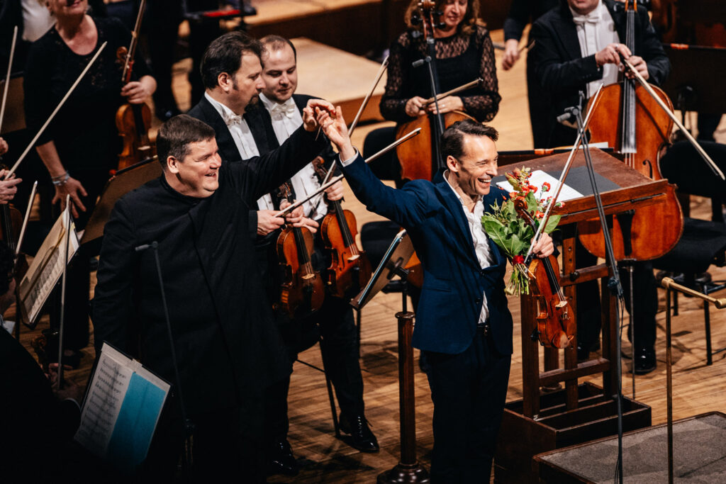 V následující skladbě programu, Koncertu pro housle a orchestr g moll, op. 67 Mieczysława Weinberga, měl sólo houslista Linus Roth, renomovaný německý umělec s významnými úspěchy na mezinárodní scéně. Roth překvapil světovou premiérou nahrávky Čtvera ročních dob v duetu s kytaristou Petritem Çeku, osobitě pojal houslové koncerty Johanna Sebastiana Bacha a zásadně se ujal odkazu Mieczysława Weinberga. V případě Bachových koncertů se necítí být specialistou, nicméně stal se jím v hudbě Mieczysława Weinberga. Nejen, že nahrál komplet jeho houslových skladeb, ale také v roce 2015 založil Mezinárodní Weinbergovu společnost. Založil také další dva festivaly – Ibiza Concerts a Schwabischr Frühling, je uměleckým ředitelem Mezinárodní houslové soutěže Leopolda Mozarta v Augsburgu, tamtéž působí na univerzitě jako profesor houslové hry v Centru Leopolda Mozarta. A hraje na housle Stradivarius „Dancla“ z roku 1703, které mu laskavě zapůjčila hudební nadace L-Bank Baden-Württemberg.