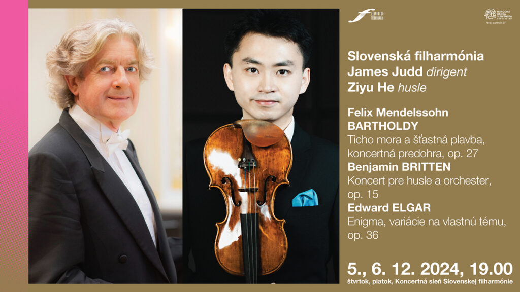 Slovenská filharmonie hostí talentované mládí. Sólový part Brittenova houslového koncertu zahraje mladý, pětadvacetiletý čínský houslista Ziyu He. Ve svých sedmnácti letech debutoval ve vídeňském Musikvereinu a 5. a 6. prosince se představí na dvojici koncertů v koncertní síni Slovenské filharmonie. Před bratislavské publikum se při té příležitosti znovu postaví bývalý šéfdirigent orchestru James Judd. Znít budou díla Mendelssohna, Elgara a Brittena. Slovenský komorní orchestr a Slovenský filharmonický sbor poté čeká výjezd do Paříže.