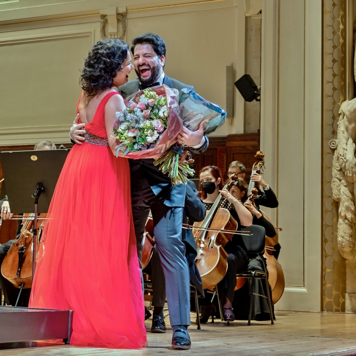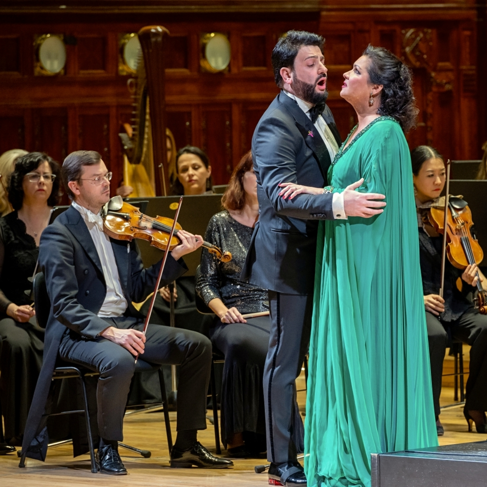Pohybovala se po pódiu od pravého k levému okraji a zpět, měnila šaty, pózovala pod Šalounovým sousoším a posílala publiku vzdušné polibky. Yusif Eyvazov v samostatných číslech i v duetech nezůstával v ničem pozadu. Je sebejistým profesionálem s velkým zvukovým objemem, pevnými výškami a se schopností zahrát emocionální naléhavost. Oproti své partnerce nicméně nevlastní tak barevně jedinečný a podmanivý hlas, který by se s naprostou samozřejmostí nutně musel všem a ve všem bezvýhradně líbit.