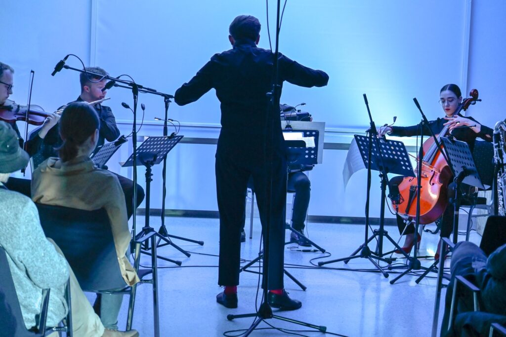 V neděli 30. března vystoupí v Galerii HAMU slovenský host, soubor laug.sonoris, který se zaměřuje na interpretaci současné hudby a hledání nových akustických a instrumentálních možností. Těleso pocházející z Trenčína, což odráží v názvu slovo ‚laug‘ odkazující na historický název města Laugarício, tvoří mladí interpreti z příhraničního regionu České republiky a Slovenska. Program, s nímž se představí v Praze, nastoluje otázky: Co všechno tvoří zvuk? Kde je hranice mezi hlukem a zastaralou představou hudební krásy? Odpovědi mladí umělci předestřou ve čtveřici skladeb. Zazní kompozice Cartography #8 od Gilberta Agostinha, The Dark Night Above the Woods od Michaela Blažka, Limerencia I. Samuela Hvozdíka a také premiéra skladby Corrode z dílny Patrika Hermana.