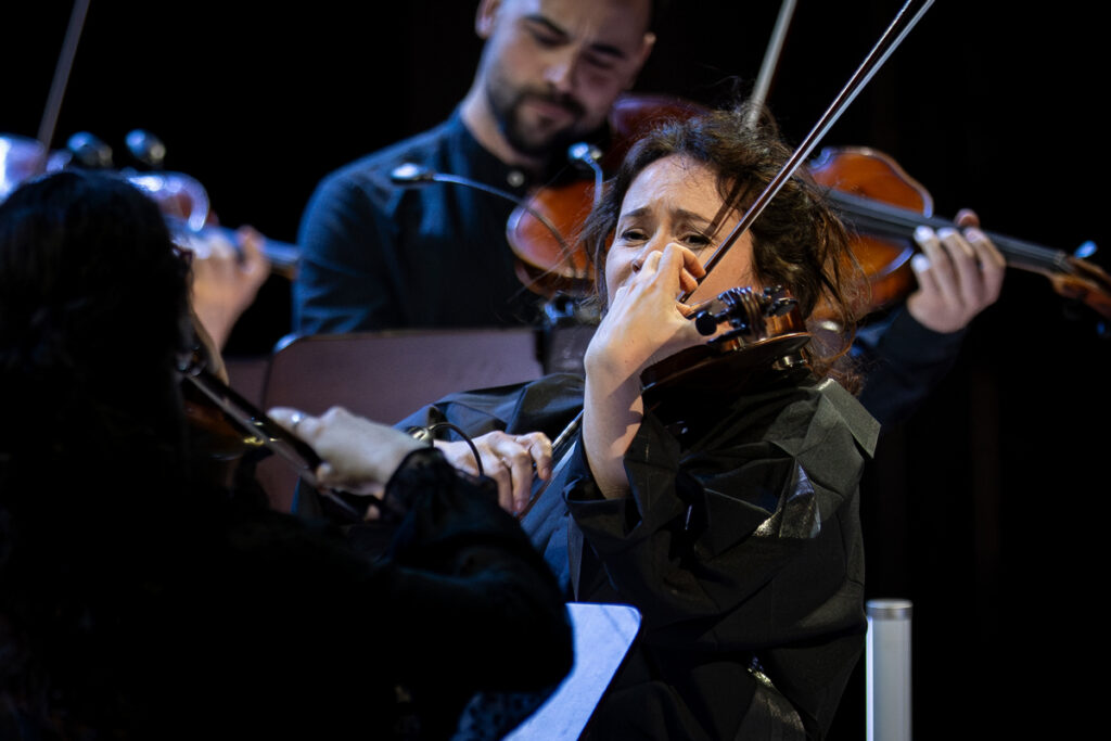 K vyjádření významu jednotlivých skladeb tohoto večera nepotřebovala okázalá gesta; posluchač jí věřil, že prožívá nejen hlavní téma, ale i veškerý jeho kontext. Hudebním proudem se nechala doslova vláčet, jako by až přestávala vnímat, kde zrovna je a co dělá. Žila hudbou. Ať už skrze hudbu trpěla, nebo se oddávala naději, vždy byla maximálně autentická a divák cítil, jak do každé noty vkládá obrovskou porci energie. Skladbu brala jako celek a i když měla zrovna pauzu ve svém partu, hudební tok odrážela stejně – orchestru byla pevnou součástí, byť byla v roli sólisty. Tomu samozřejmě napomohlo to, že soubor byl schopen zvládnout náročný repertoár 20. století bez dirigenta, a to s naprostou samozřejmostí a bez zaváhání. Hodnotit zde souhru vůbec nemá smysl, protože Cameratě Bern nejde „pouze“ o hudební interpretaci, ale také o podpoření všeobjímající myšlenky projektu a jeho celkového sdělení.