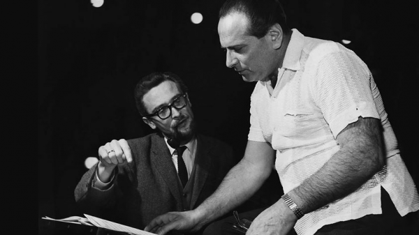 Skladatel Rudi Martinus van Dijk pracuje na partituře svých Epigramů pro orchestr s dirigentem Torontského symfonického orchestru Walterem Susskindem.