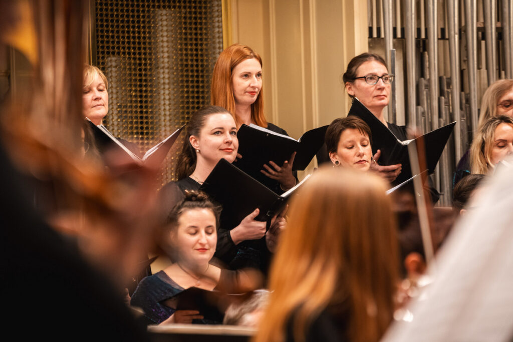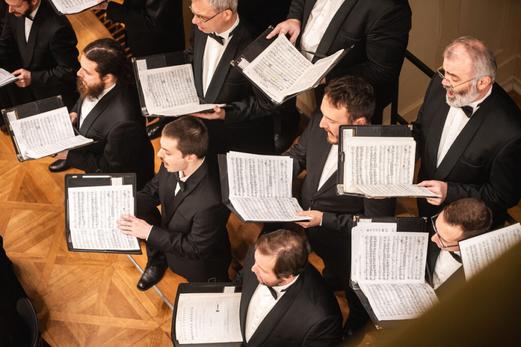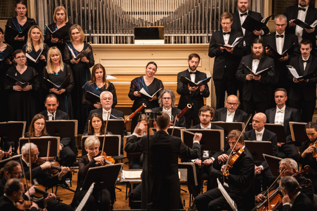 Vyprodaný čtvrtý abonentní koncert Českého filharmonického sboru přece jen vykazoval několik volných míst v hledišti, zvýšená nemocnost se podepsala na návštěvnosti i tak lákavého programu. Sál Besedního domu však byl téměř plný a stejně, možná více, bylo naplněné i jeviště. Přidané praktikábly směrem do hlediště rozšířily pódium tak, aby se na ně vešel přibližně stočlenný provozovací aparát. Orchestr a sbor se při takovém programu nedal zmenšit na komorní obsazení, na jaké je Besední dům stavěný.