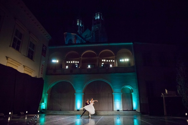 Už třetím rokem zahajuje balet Národního divadla Brno svou sezónu Letním baletním koktejlem. Ten letošní se přesunul z letní scény na hradě Špilberk do komornějšího prostředí Biskupského dvora. Změna baletu prospěla. Krásné renesanční arkády dvora a nad nimi se tyčící majestátní barevně osvětlený Petrov vytvořily výbornou kulisu. A k atmosféře přispělo i nové hlediště, které připomíná to otáčivé v Českém Krumlově, pouze je statické. Škoda jen, že poslední den čtyřdenní přehlídky, 2. září, muselo být představení kvůli dešti zrušeno.
