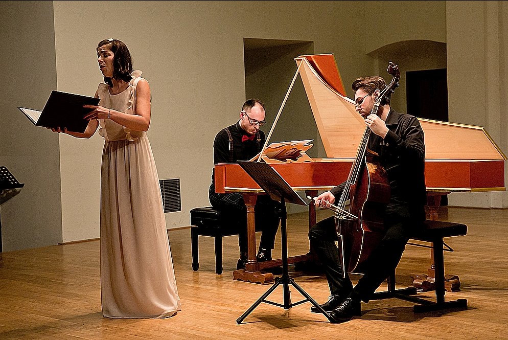 Claudio Monteverdi, skladatel stojící mezi renesancí a barokem, je považován za představitele doprovázené monodie, která dala později vzniknout opeře. Polyfonní hudební myšlení bylo postupně nahrazováno jednohlasem podloženým harmonizací. Pěvkyně přednesla skladbu Ohimé ch´io cado ohimé (Běda, já padám, běda), SV 316 z Quarto scherzo delle ariose vaghezze, 1624. Dramatický projev a rychlé koloratury znamenaly pro publikum ojedinělý zážitek. Na závěr pěvkyně přednesla píseň Oh solitude (Ach samoto má nejsladší) Z.406 z Comes amoris z roku 1687 Henryho Purcella. Tento anglický tvůrce barokní opery se sice dožil jen třiceti šesti let, nicméně jeho dílo je obdivuhodné. Duchovní, instrumentální i operní tvorba ho učinila zakladatelem anglické hudby a večer zazněla jeho skladba plná emocí a napětí.