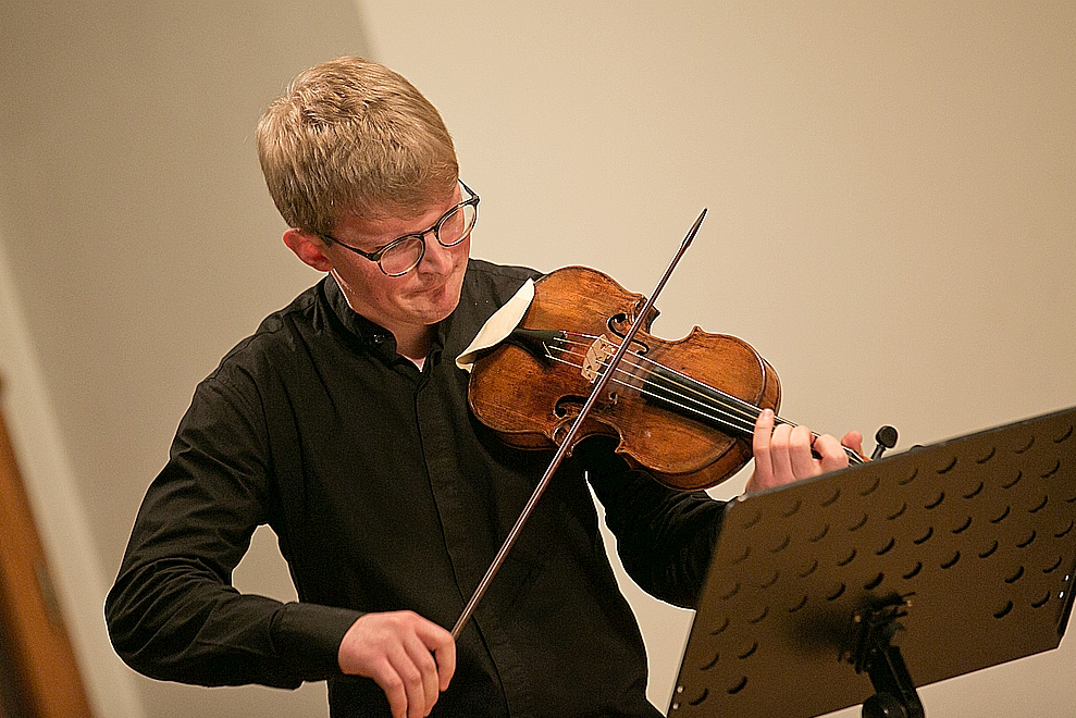 Heinrich Ignaz Franz Biber, který žil ve druhé polovině 17. století, se od povýšení do šlechtického stavu psal Biber von Bibern. Narodil se ve Stráži pod Ralskem, působil v Kroměříži a nakonec v Salzburgu. Jako skladatel byl velmi plodný a uznávaný, za svoje dílo byl povýšen do šlechtického stavu a působil jako první houslista a kapelník. Traduje se, že olomoucký biskup ho poslal na nákup hudebních nástrojů, ze kterého se již nevrátil a zůstal v Salzburgu. Kdo ví… Sonatina pro violu da gamba a basso continuo, kterou přednesli Michal Raitmajer a Adam Štefunko, hýřila emočními, dramatickými a technickými efekty.