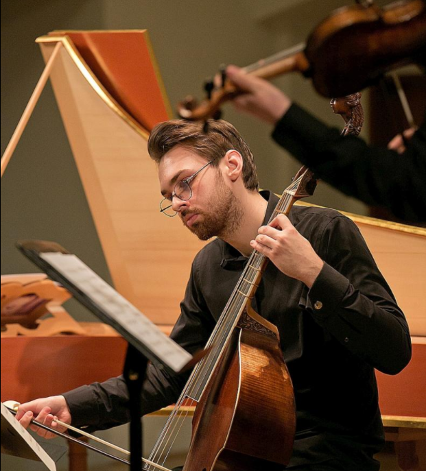 Michal Raitmajer pochází z Brna a věnuje se hře na violoncello a na violu da gamba. Nejprve vystudoval konzervatoř a nyní se na Katedře varhanní a historické interpretace věnuje historickému violoncellu. Tento večer jsme ho mohli slyšet jako hráče na violu da gamba, kdy předvedl schopnost vytvořit jak dramatický hutný zvuk, tak vyzněly i melodické a výrazové části.
