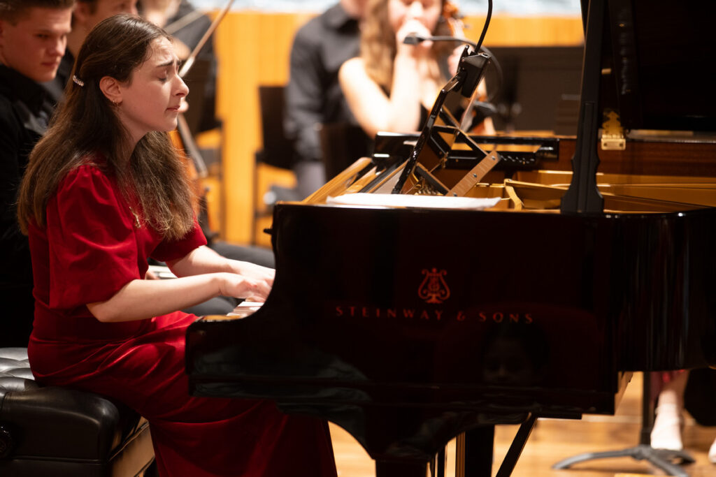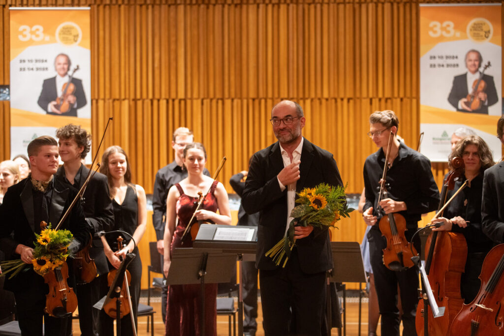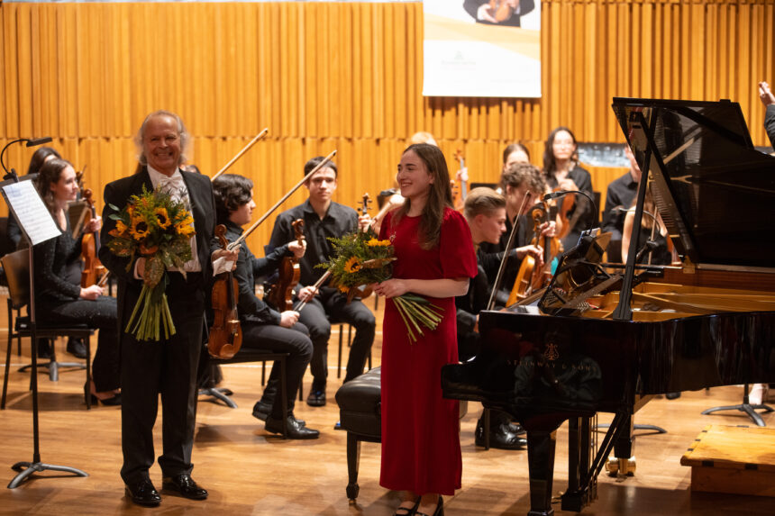 Mozartovu ranou skladbu vystřídal v programu Koncert pro klavír, housle a smyčce F dur, Hob XVIII:6 Josepha Haydna. Klavírní part hrála Barbare Tataradze z Gruzie (předkoncertní rozhovor čtěte ZDE), která byla hostem Svátků hudby v Praze. Hudeček nehrál tento koncert poprvé, a dokonce je ke zhlédnutí záznam z Přerova z roku 2017, kde s Hudečkem hraje první sólový part cembalo, jak to Haydn původně napsal. Verze s klavírem zněla na podiu sálu Pražské konzervatoře výrazně moderněji. Zatímco v záznamu z Přerova hlas houslí cembalo upozadil, byl to tentokrát vyrovnaný duel klavíru s houslemi. Místy, při průzračném doprovodu smyčců, působil koncert spíše jako sonáta pro klavír a housle, byť Hudeček byl více na očích. Ostatně v době vzniku díla se dueta i dvojkoncerty psaly jako skladby pro klavír s doprovodem houslí. Barbara Tataradze hrála klavírní part Haydnova dvojkoncertu náležitě dominantě a suverénně a s bezpečnou technikou v brilantních pasážích koncertu. A s přehledem obstála jako inspirativní osobnost pro své kolegy v konzervatorním orchestru, který tvořili žáci druhého a třetího ročníku proslulého domácího hudebního ústavu. Což potvrdila v následujícím přídavku, který jí v roce 2021 posunul z prvního do druhého kola Mezinárodní klavírní soutěže Junior and Young Artists Gina Bachauer v Salt Lake City. Spolehlivě virtuózní provedení La campanelly, etudy č. 3 gis moll z Velkých etud podle Paganiniho Franze Liszta mělo působivý ohlas.