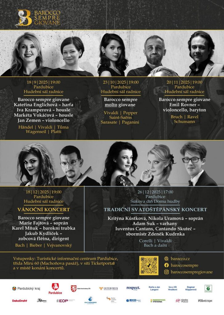 Komorní soubor Barocco sempre giovane vstupuje do nové sezóny s pestrým koncertním programem, který nabídne pardubickým hudebním příznivcům do konce roku pětici koncertů. Hlavními pilíři sezóny budou zahajovací koncert s harfistkou Kateřinou Englichovou, vystoupení v Německu působícího violoncellisty Emila Rovnera a tradiční svatoštěpánský koncert, jehož hosty budou sopranistky Kristýna Kůstková a Nikola Uramová.