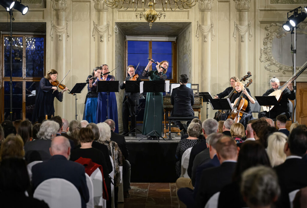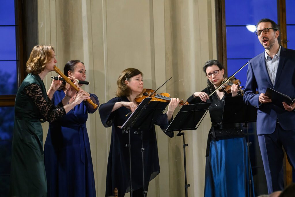Devět instrumentalistů na koncertě 16. dubna ukázalo již tradiční sehranost a ansámblový cit. Všichni se spolu znají, hrají už léta a mohli by společně vyučovat teorii ansámblové interpretace. Nepotřebují dirigenta, při začátcích se na sebe podívají a prostě začnou spolu, dovedou uprostřed hudby společně zpomalit, nebo vložit nějaký hudební vtip. A pokud se k ansámblu připojí někdo spíše nový, třeba lipský kontrabasista Tilmann Schmidt, stane se naprosto organickou součástí celku. Mimochodem, jen málokdy jsem viděl někoho za kontrabasem s tak dokonale vedenou pravou rukou. A tak posluchač na koncertě neví, co sledovat dříve, jestli právě smyčec Tilmanna Schmidta, nebo citlivou hru na violoncello Hany Flekové, theorbu či barokní kytaru Jana Krejči, nebo nenápadně dokonalý výkon cembalisty Pabla Kornfelda. Ten patří mimochodem mezi zdejší největší znalce a milovníky staré hudby, a právě on tvrdí, že Purcellově hudbě se vyrovná jen máloco. Také můžete sledovat místy až rozverné flétny Jany Semerádové, její kolegyně Julie Brané nebo tentokrát spíš nenápadné trio smyčců, houslistky Lenku Torgersen a Magdu Malou a violistu Andrease Torgersena. Za pozornost ovšem stály i renesanční fresky Císařského sálu a krásný výhled na vlahý večer v jarní Praze.