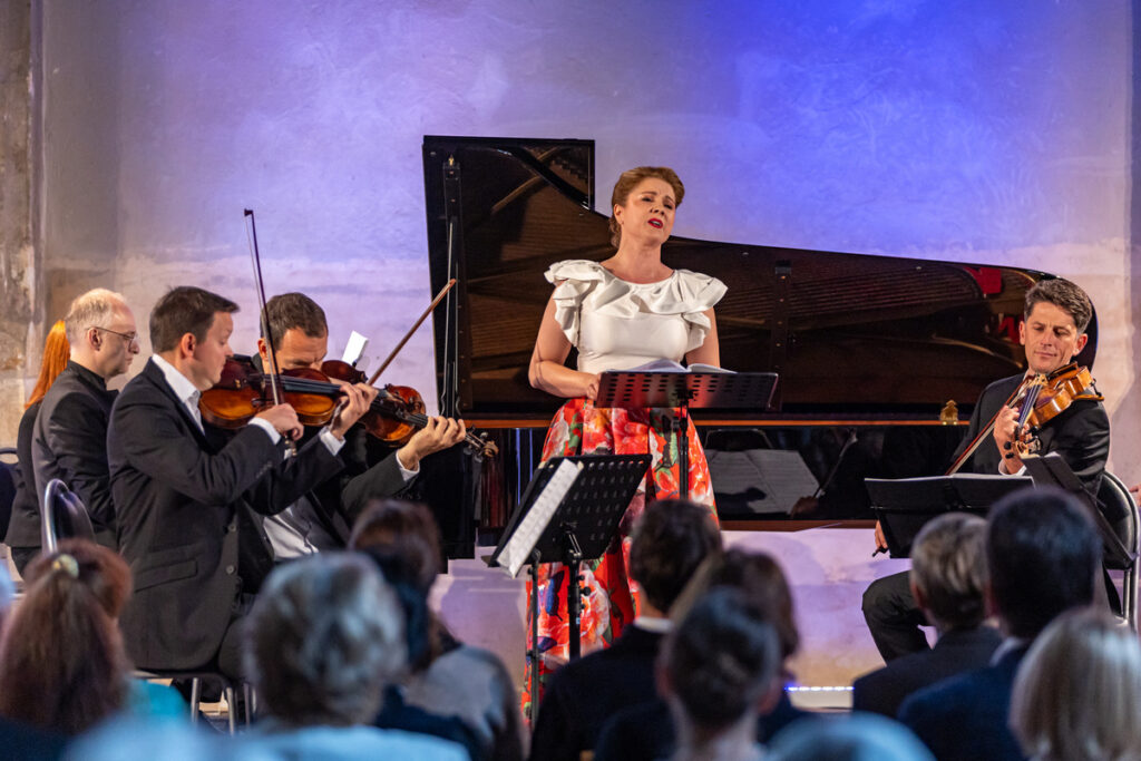 Diváka zaplavilo blaho vyvěrající samozřejmě zejména u paní sopranistky. Či spíše Paní sopranistky? Zpívat dopoledne pro leckterého pěvce není komfortní záležitostí a je pak slyšet, když se dostává až v průběhu vystoupení do „provozní teploty“. Ne tak Kateřina Kněžíková. Opět potvrdila svou připravenost a hned zkraje se jala přesvědčovat o bezvadně technicky uchopeném hlasovém aparátu. Legato na omak hladké, rozličnost výrazových metod, témbr lahodný, vibrato tehdy, když chci, ne proto, že jinak to nejde. Umělkyně důsledně a soustavně přiživovala kontakt s publikem, dynamickou a obecně interpretační diferenciací s bohatou mimikou přesvědčovala jednak o obeznámenosti s významem zpívaného, jakož i o přípravě, která na noty na stojánku není fixovaná. Kněžíková umí stát na pódiu, decentními gesty efektivně dokresluje dění a ví, že ticho také hraje. Fantastické, suverénní…