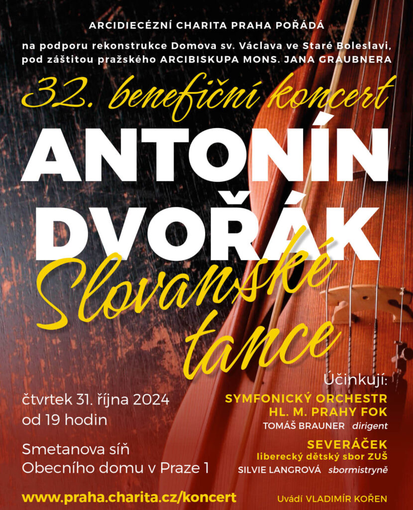 Ve čtvrtek 31. října se v pražském Obecním domě uskuteční dvaatřicátý ročník benefičního koncertu Arcidiecézní charity Praha. V letošním roce bude koncert reflektovat Rok české hudby a jeho protagonisty budou mladý klavírista Robert Ferenc, liberecký dětský sbor Severáček a Pražští symfonikové s Tomášem Braunerem. Výtěžek koncertu věnuje charita na rekonstrukci Domova sv. Václava ve Staré Boleslavi.