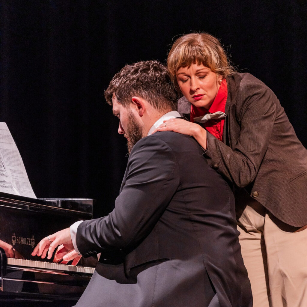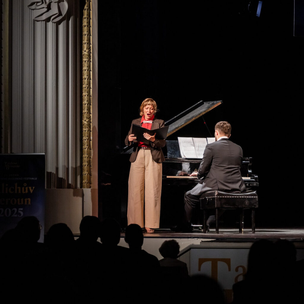 Finále patřilo cyklu na moravskou lidovou poezii Nový špalíček. Martinů ho napsal dva roky po smrti Vítězslavy Kaprálové v Americe. Střídavě zpívali Roman Janál a Viktorie Kaplanová. Doprovázející pianista Vojtěch Červenka, přesvědčivý v sólových skladbách, podporoval s naprostou jistotou a ohleduplností pěvecké partnery. Víceméně nevnímán u nástroje stranou u portálu, ale umělecky přítomen, zahrál v druhé části představení také roli Jiřího Muchy. Režisér Adam Rut měl jistě radostnou práci s herci takového formátu, kteří vždy vědí jak nejlépe naplnit režijní vize.