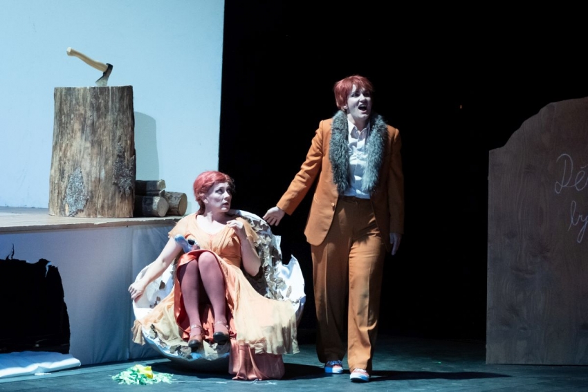 O den dříve hrál soubor na zámeckém nádvoří Janáčkovu „brněnskou“ operu Příhody lišky Bystroušky, Jiřím Heřmanem režijně ztvárněnou dojemně pravdivě a přesně, ze života, zároveň s nenásilným duchovním přesahem. Také tato inscenace musela doznat pro Smetanovu Litomyšl určitých změn, na letním festivalu pochopitelně chybí veškerá jevištní technologie, provaziště a většina světel, které jsou v Janáčkově divadle k dispozici jako samozřejmost. Přesto zůstala drtivá většina uměleckého sdělení, vtěleného do inscenace, zřetelná. (O podzimní premiéře jsme psali v článku Aby lidé o mně a o tobě nepsali v novinách). Naznačeny jsou momenty, které mají čistou působivost a při jejichž domyšlení zatrne, ale jsou tu i momenty hravé a humorné, ať už jsou to detaily ve vztahu revírníka a jeho ženy nebo poťouchlost lesní havěti. Jiří Heřman zabydlel scénu dětmi a hračkami, maskami i symboly, barvitými detaily i pointami naznačujícími to, co v příběhu není jasně ukázáno. Svou typickou mysteriózností výrazně šetří, a přesto dokáže naznačit velikost dotyku s věčností.