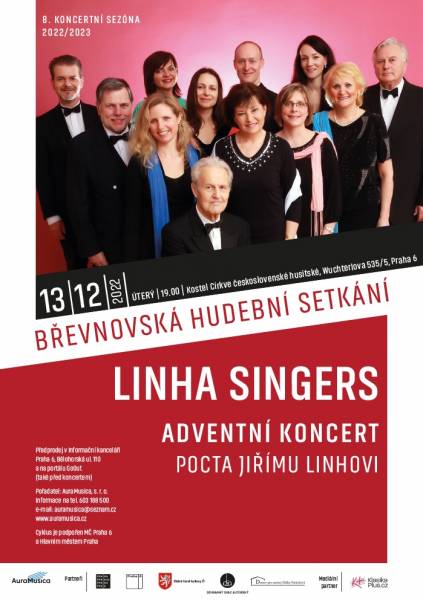 Posledním projektem podzimní sezóny Břevnovských hudebních setkání bývá už tradičně adventní koncert. K tomu letošnímu pořadatelé pozvali vokální těleso Linha Singers, jehož historie sahá až do roku 1963, kdy ho založil zpěvák, dirigent a skladatel Jiří Linha. Koncert se bude konat v úterý 13. prosince v 19 hodin v kostele Církve československé husitské ve Wuchterlově ulici v Praze-Dejvicích.