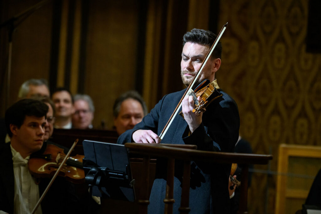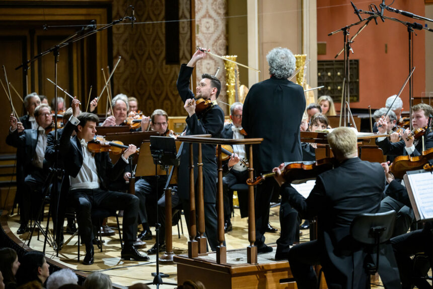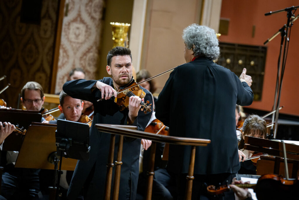 Osobitým, stylově poučeným a technicky nevídaným výkonem Jiřího Vodičky se posluchač mohl nabažit hned v první půlce večera věnované Šostakovičovu Koncertu pro housle a orchestr č. 1 a moll, op 77. Čtyřvěté dílo skladatel naplnil dechberoucími výrazovými kontrasty oscilujícími mezi dramatickými explozemi dravých rytmických výbojů a impresivně hřejivými a modulačně jímavě zkroucenými melodickými liniemi, jež jako by se toulaly kdesi v intimních, efemérními prožitky vyplněných nížinách lidského nitra. Do obou charakterových poloh se sólista dokázal vžít s empatickým pochopením pro progresi hudební formy a expresivitu díla. To se v plné míře projevilo už v první větě, již v rytmicky sjednocené podobě uvedla dokonale sehraná violoncella, která s jistotou čechrala tektonickou půdu pro nástup tématu v sólových houslích. Vodička uložil skladbě výrazově ztemnělý nádech gradačního napětí, jejž přesvědčivě saturoval pečlivě stupňovanou dynamikou a šustivě zastřeným tónem. Dekadence úvodní věty byla ve druhé větě vystřídána typicky šostakovičovskými rytmickými vzorci, které Vodička rozezněl za pomoci ostrých akcentů a cíleně drsného výrazu. Prchlivé, ale přitom jednoznačně odměřené tahy orchestrálních houslí pak Semjon Byčkov posadil do příkrých, s analytickou přesností rozlišených tempových změn, čímž dosáhl skvělého dynamického efektu. Začátek třetí věty zacloumal akustikou Dvořákovy síně tvrdým úderem tympánů, jímž započal pomalý vývoj široce vyklenutého tématu, sloužícího coby ostinátní podklad pro preludování hlavního sólisty. Šostakovič svou passacagliu posadil do plíživého a pomalu se odvíjejícího tempa, v němž hlavní téma kontinuálně přesazoval do neobvyklých nástrojových skupin. Orchestr – disciplinovaně zkrocený jistou dirigentskou gestikou – vynesl tematický pohyb pečlivou modelací dynamických oblouků utvářejících dojem výrazové ztěžklosti a zavalitosti, což ve výsledku posílilo vyhraněný charakterový profil celé věty. Prostřednictvím mistrovsky zahrané kadence, v níž Jiří Vodička zúročil svou schopnost propojit nejširší expresivní škálu houslové hry s bravurní technikou, se skladba nerušeně přenesla do závěrečné věty, kterou opanovala expozice krátkého, ale úderného melodického tvaru v bicích. Oproti bezchybnému dosavadnímu průběhu skladby se zde však místy projevovalo, že chirurgicky pečlivý přístup orchestru k přísnému osekávání rytmických schémat postrádal na celkové syntéze, která by jednotlivé a individuálně dokonalé výstupy instrumentálních skupin podřídila jednotné interpretační ideji. Výsledkem byl čistý, avšak příliš akademicky působící výkon. Zdálo se, že skladba až příliš vystupovala sama za sebe bez originálnějšího dirigentského přičinění: jako by posluchač měl k dispozici pouze Šostakoviče bez Byčkova.