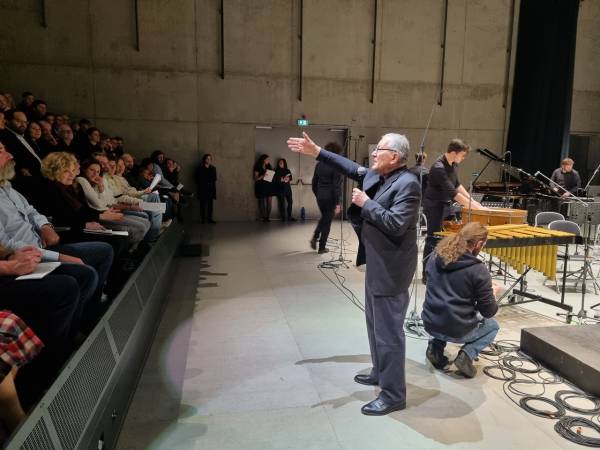 Vrcholným číslom večera sa pre mňa stala skladba domáceho autora Iana Mikysku s názvom Šan-šuej. Mikyskova kompozícia vychádza z niekoľkých mimohudobných inšpirácií, predovšetkým z čínskej tušovej krajinomaľby. Vo svojom texte Mikyska spomína niekoľko metafor, ktoré sú s touto inšpiráciou spojené; napríklad pripodobňovanie ťahu sláčika k ťahu štetcom, či orchestru k priestoru krajiny. Nič z tohto sa však vo výsledku neprejavovalo ako nejaké popisné klišé. Dôležitým faktorom tejto kompozície pritom bolo to, že v jej čele stáli dvaja sólisti: Irvin Venyš s basklarinetom a Martin Opršál s bicími. Ich rola pritom nebola voči orchestru až tak dominantná, ako tomu býva u typických koncertných diel. Skôr som mala pocit, že je ústredná dvojica pôvodcom impulzov, na ktoré orchester reaguje; protagonisti tak pôsobili ako prirodzení lídri, stále úzko prepojení s ansámblom. Obaja navyše podali skvelý, sústredený výkon. Mikyskova skladba vyrastá vlastne „z ničoho“ – na úvod počujeme len air sounds v basklarinete, po pár minútach sa pridávajú aj ďalšie nástroje. Len postupne začínajú zaznievať tóny, neskôr sa pomaly rozvíjajú do intervalov. Po istom čase prichádza zlom, spoločné gesto – súzvuk orchestru, po ktorom je dianie o čosi hutnejšie, čas je zrazu organizovaný inak, miera zmeny je vyššia. Napriek tomu však skladba končí tak povediac al niente, v miznúcom šušťaní, ktoré celý orchester vydáva trením dvoch hárkov papiera. V tomto prípade sa podľa mňa autorovi naozaj podarilo štrukturovať priebeh skladby tak, aby poslucháčov vtiahol do svojej „hry“, do svojho pojatia času.