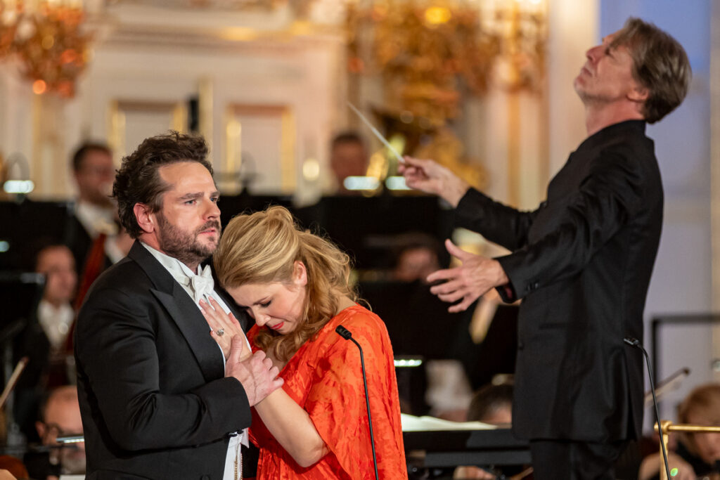 Barrie Kosky (čerstvý rozhovor čtěte ZDE) byl v letech 2012 až 2022 intendantem a hlavním režisérem Komické opery v Berlíně. Kosky se zasadil o vznik programového schématu zahrnujícího klasickou operu, muzikál a operetu výmarské éry. A program koncertu ve Španělském sále Pražského hradu umělcův rozsah činnosti reflektoval. Před vlastním aktem udělení skleněné plastiky ve tvaru violoncella (patrně v návaznosti na erbovní dílo festivalu Dvořákova Praha, úvodem festivalu totiž tradičně zaznívá Dvořákův Violoncellový koncert h moll) tak diváci slyšeli kromě předehry k Janáčkovým Příhodám lišky Bystroušky duet Lišáka a Lišky z téhož díla a úplný závěr Dvořákovy Rusalky. V obou zpívaných kusech měla slovo přední česká sopranistka Kateřina Kněžíková, jejíž kariéra v posledních měsících zaznamenává nápadně vyšší obrátky, ostatně je to jen pár dní, co debutovala ve slavné newyorské koncertní síni Carnegie Hall. Kateřina Kněžíková podala svůj tradičně poctivý, vysoce profesionální a spolehlivý výkon. V liščím duetu Kněžíkové jí byla partnerkou rovněž skvělá Jarmila Vantuchová, jejíž kariéra je s tou Koskyho výrazně spjata skrz nedávnou salcburskou produkci Káti Kabanové, kde Barrie Kosky měl na starosti režii a Jakub Hrůša hudební nastudování. Této inscenaci příslušní porotci nedávno přiřkli cenu ICMA. A Peter Berger, zpívající tenorový part finále Dvořákova mistrovského díla je rovněž vysoce ceněnou osobou v uměleckém světě, čehož budiž dokladem aktuální laureátství Ceny Thálie. Všichni zpěváci nabídli své standardně kvalitní výkony patrné i přes danému uměleckému záměru nevhodnou akustiku – z dvaadvacáté řady posluchač vnímá téměř výhradně zpěvní barvu, o srozumitelnosti zpívaného slova či pěvecky technických hrátek nemůže jít řeč. Velice sympatické a vzhledem k oceňování operního režiséra vhodné bylo sice spíše náznakové, ale bezpečně přítomné herectví vystupujících pěvců. Čili mimochodem děkuji za zpívání bez not.