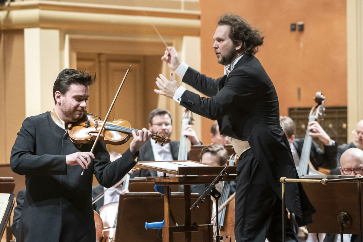 Jiří Vodička v úvodu první věty Allegro moderato posluchače navnadil vřelým až bezstarostným tónem, který se však postupně přelil do znepokojení (své si k tomu dodaly horny). Tomáš Brauner byl velmi pečlivým dirigentem: dbal na souhru i tišil a současně podněcoval orchestr k dynamice a tlumeným emocím. Druhá věta Andante assai je ztišením, které dá prostor sólistovi. Cituplná pasáž doprovázená pizzicatem smyčců se rozvine v láskyplný zpěv, v němž dal Jiří Vodička vyniknout krásněnu zvuku svých houslí Joseph Gagliano z roku 1774. Opět jsme museli sólistu obdivovat, na jak malé ploše umí postihnout – a technicky je ztvárnit – různé emoce: tentokrát od líbeznosti ke vzrušené excitaci a závěrečnému ztišení a soustředění. V třetí větě Allegro, ben marcato jako by vrcholil zápas sólového nástroje a komunikačního partnera – orchestru, který si stále „tepe“ svou, i když housle tóny odsekávají a v bězích spějí k závěru. Tento skrytě probíhající zápas končí závěrečným sólem, po kterém nemůže následovat nic než aplaus. A přídavek Paganiniho. Že Jiří Vodička patří k našim nejlepším a vyhledávaným houslistům, je známo, ze strany České filharmonie je však velmi prozíravé a velkorysé, že dává svým členům tyto sólové šance.