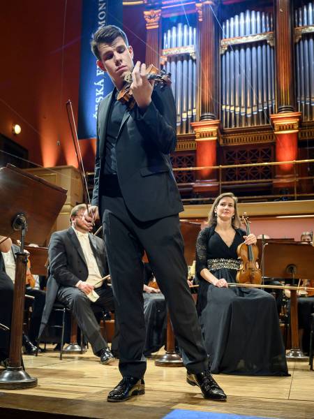 Ve zcela jiném stylu je Fantasie pro housle a orchestr g moll od Josefa Suka. Fantasie patří k mladším Sukovým dílům. Suk se v ní uvolnil, náročné, virtuózně koncipované houslové sólo je doprovázené až symfonicky pojatým orchestrálním partem. Přestože je fantasie jednovětá, velmi zřetelně se dělí na tři části, tempově označené. Po Allegru impetuoso přichází líbezné Andante con moto aby v Allegru noc spirito v mohutné gradaci vyvrcholila. Skladba se tak podobá spíše houslovému koncertu. Již kvůli vysoké technické náročnosti sólového partu. Ten přišel zahrát Jan Mráček, jeden z našich nejlepších mladých houslistů. Mráček je technicky velmi dobře připravený, ale kromě toho dokáže být i výrazově velmi emotivní. Jeho housle dokáží vyjádřit celou škálu emocí, jeho sólová hra v souzvuku s flétnou patřila k těm nejsilnějším. Bohužel, housle by se měly lépe vydělovat z orchestrálního pozadí. Při fortissimech, a těmi sir Gardiner nešetřil, zvuk houslí zanikal, stejně tak při příliš hlasitém zvuku tympánů. Nicméně výsledný dojem byl skvělý a orchestru i sólistovi se dostalo zasloužených ovací.