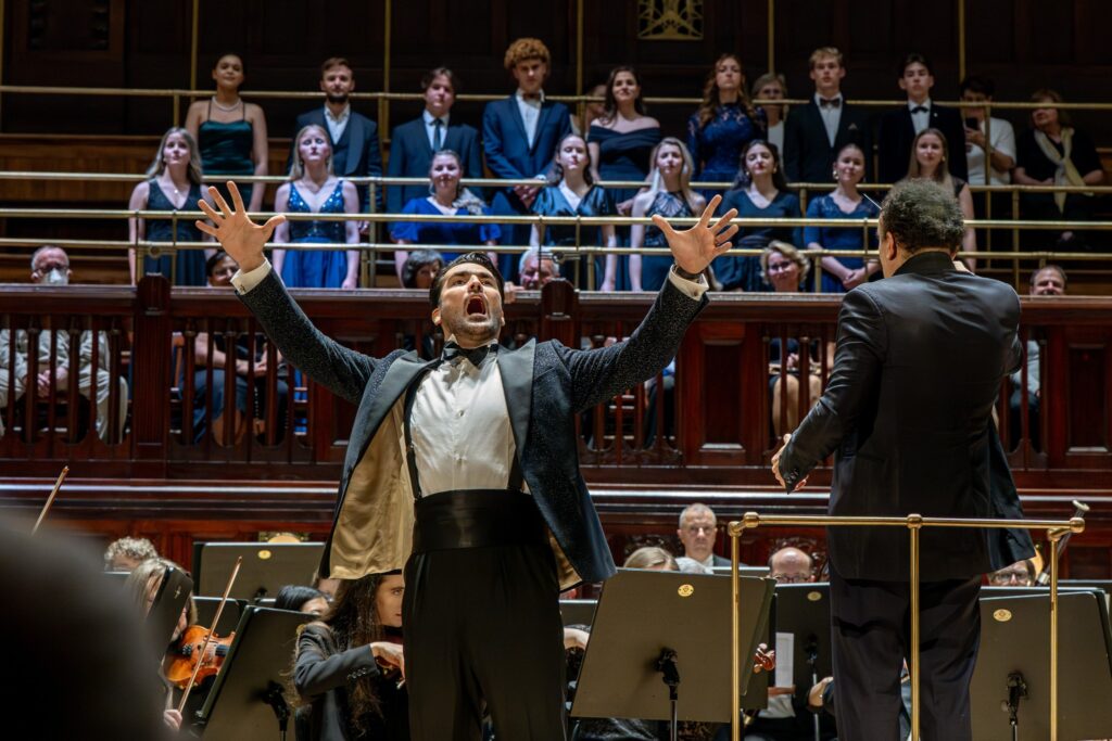 Pěvecky na mne ovšem druhá polovina koncertu zapůsobila rozpačitěji. Tetelman si pro ni vybral Pucciniho hrdiny Cavaradossiho, Dicka Johnsona, Pinkertona a Kalafa. Hned u árií Recondita armonia a E lucevan le stelle z Tosky se u mne dostavil pocit, že Tetelman jakoby přepnul a přestylizoval se do něčeho jiného, než čím byl ještě v první polovině, že se najednou snaží zpívat hlasem, který (prozatím) nemá – a že mu to není ku prospěchu.